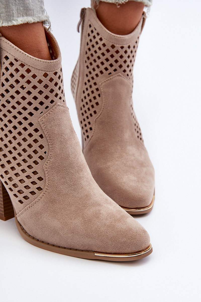 Botki Ażurowe Eko Zamsz Słupek Damskie Beżowe Stardara A5620-8