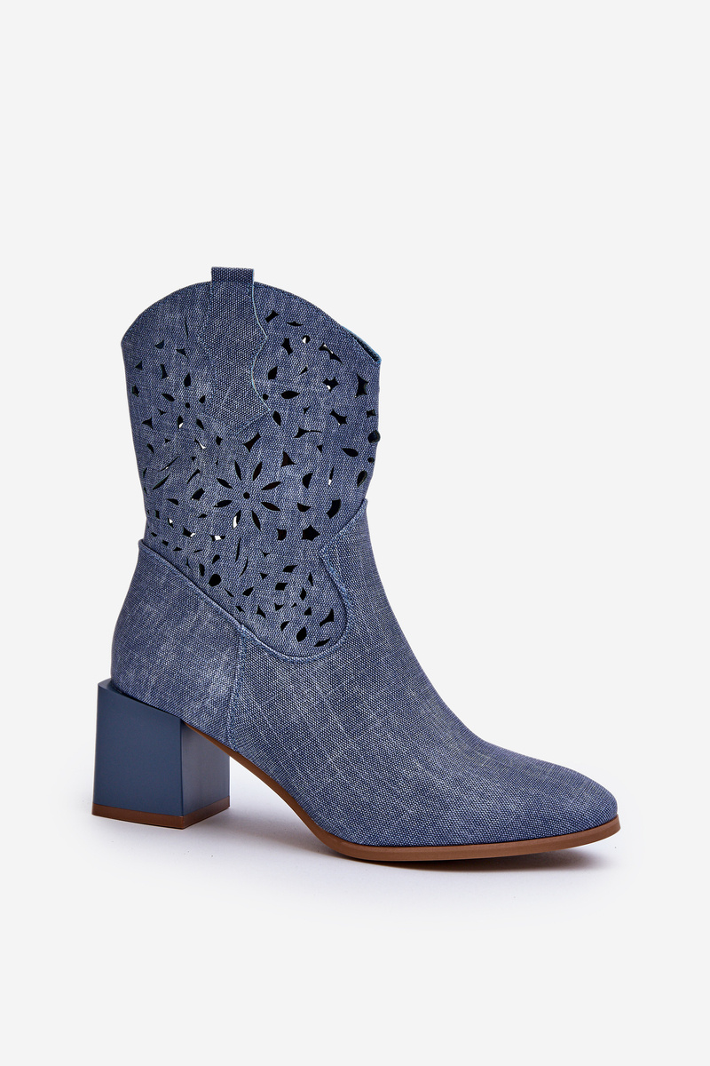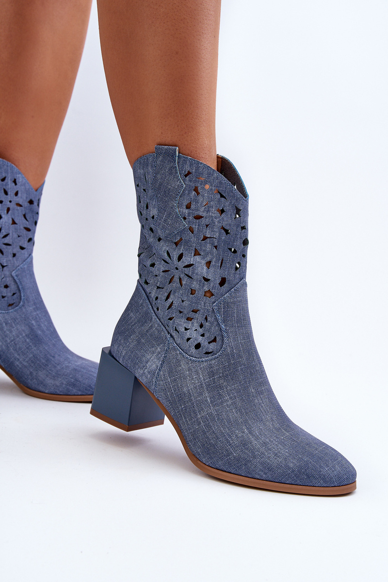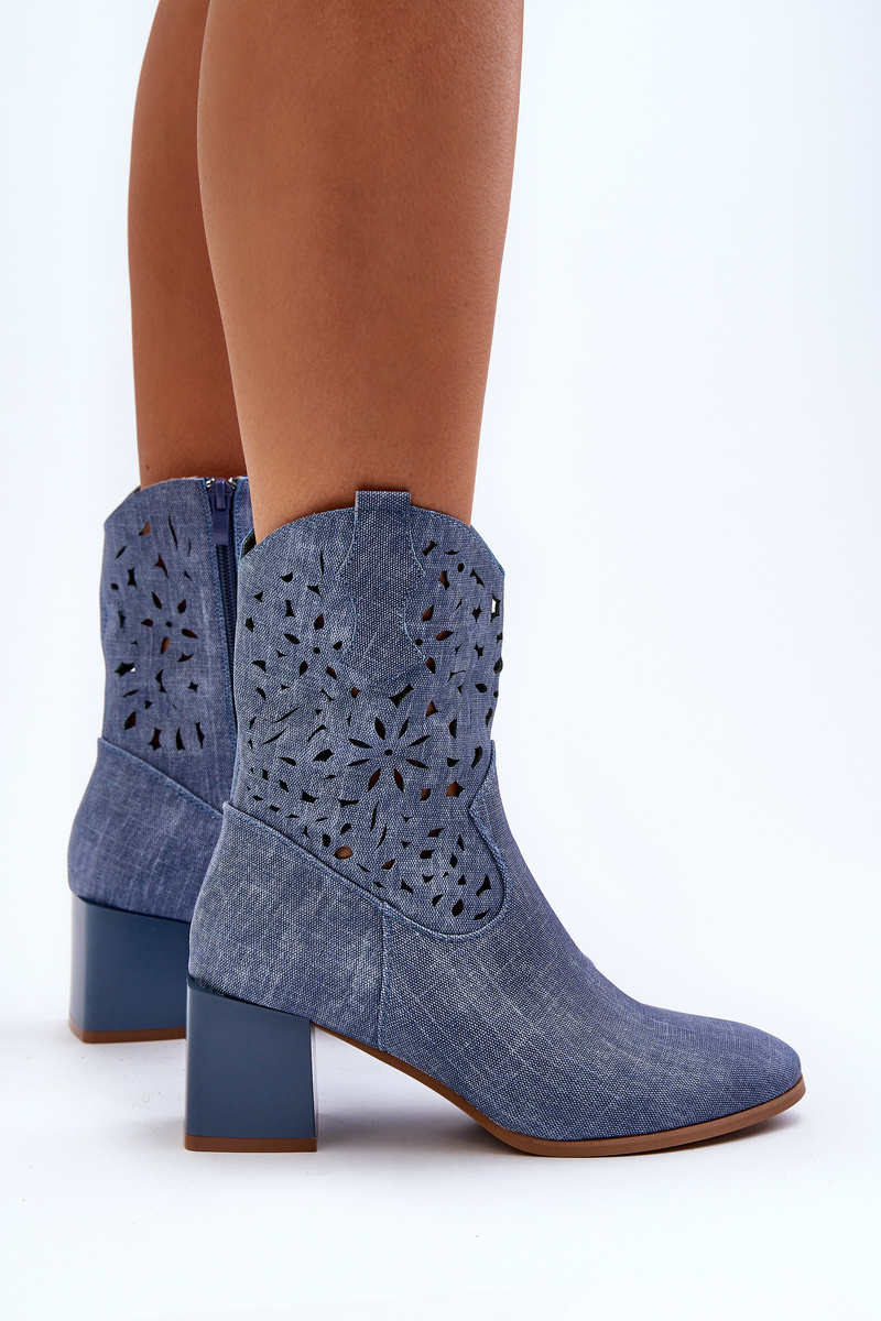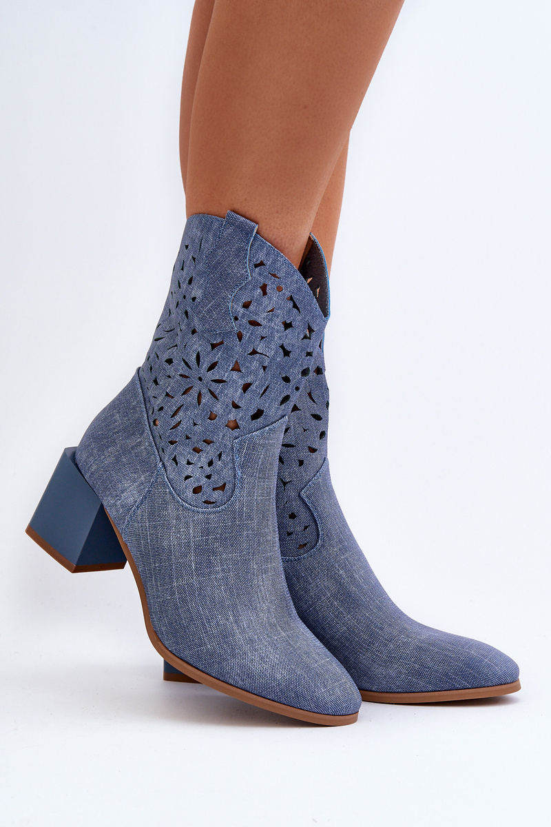 Botki Ażurowe Jeansowe Obcas Klocek Niebieskie Irvelame ASA217-7
