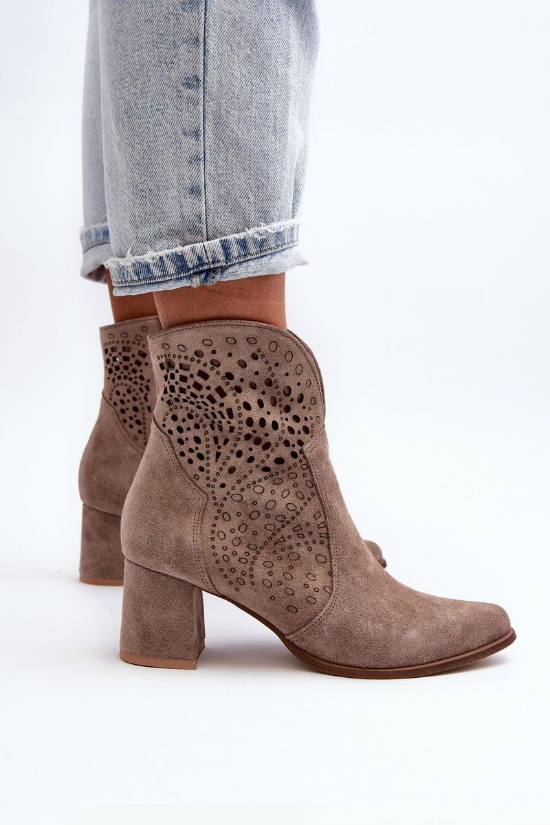 Botki Ażurowe Na Obcasie Zamsz Zazoo 3166/P Beżowe