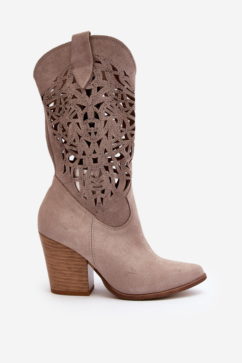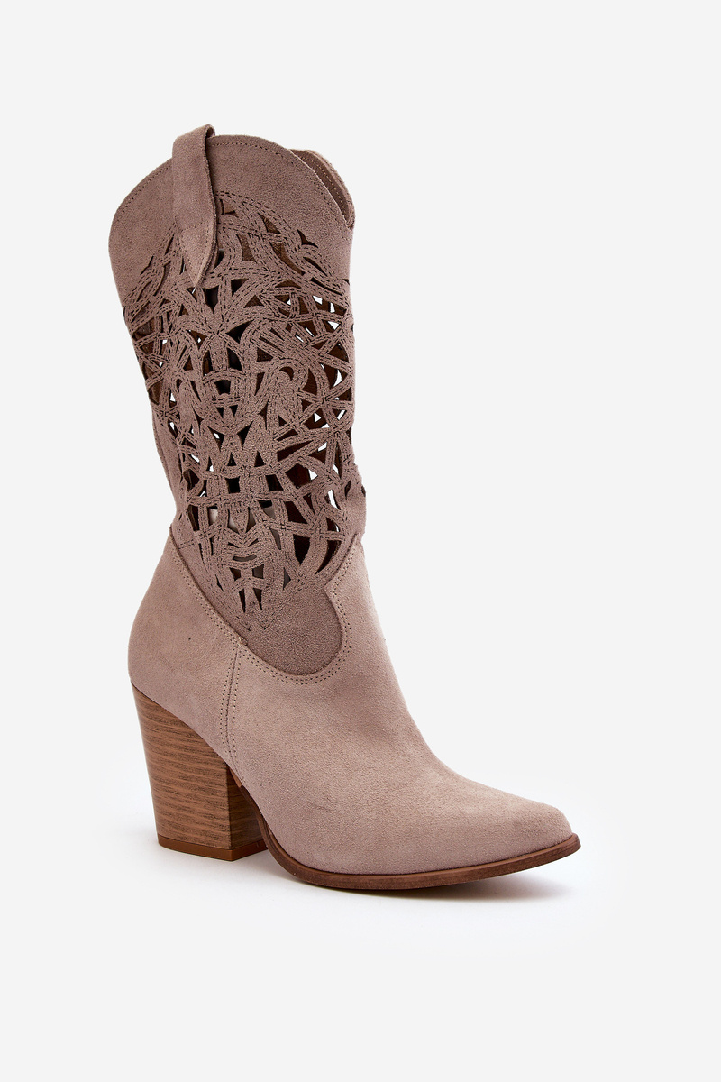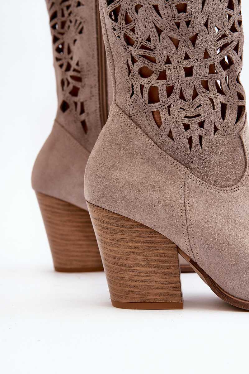 Botki Ażurowe Na Słupku Zamsz Cappucino Zazoo 3414