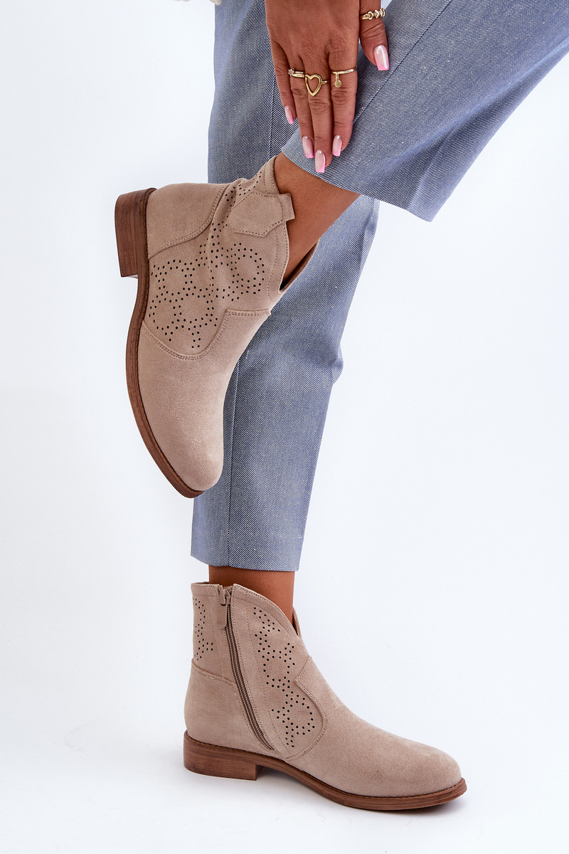 Botki Ażurowe Płaski Obcas Damskie Jasnobeżowe S.Barski HY66-151