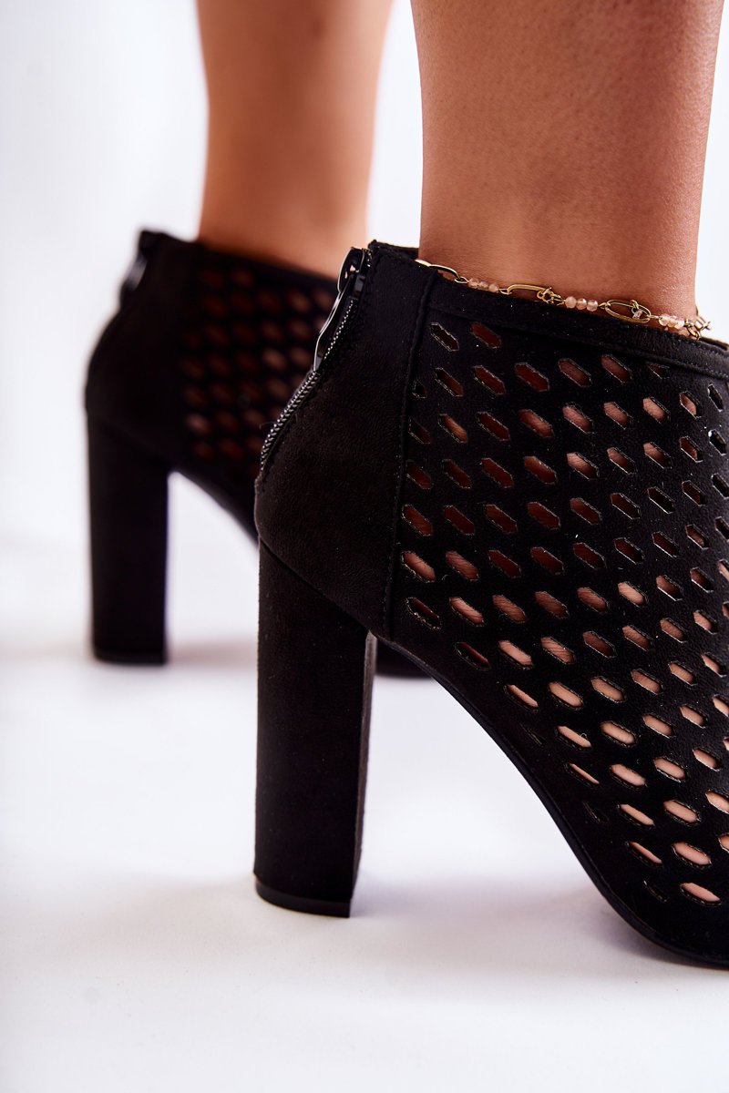 Botki Ażurowe Zamsz Czarne Jenissa