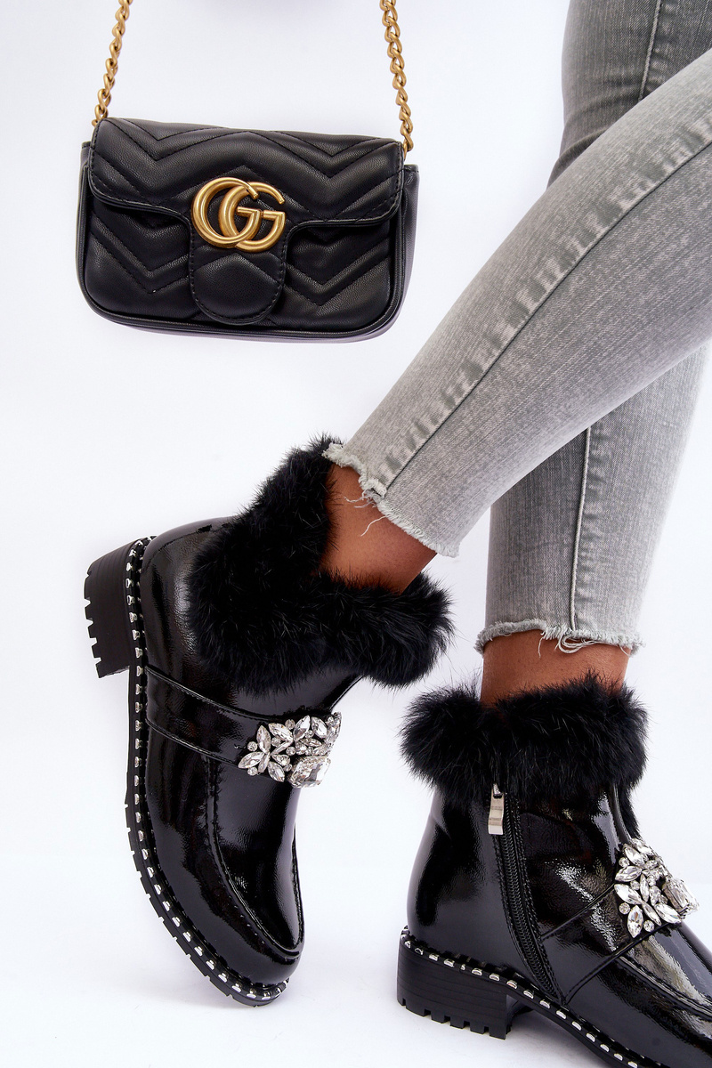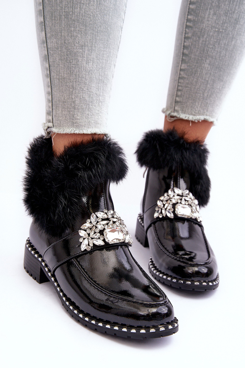 Botki Biżuteryjna Ozdoba Futerko S.Barski MR870-73 Czarne