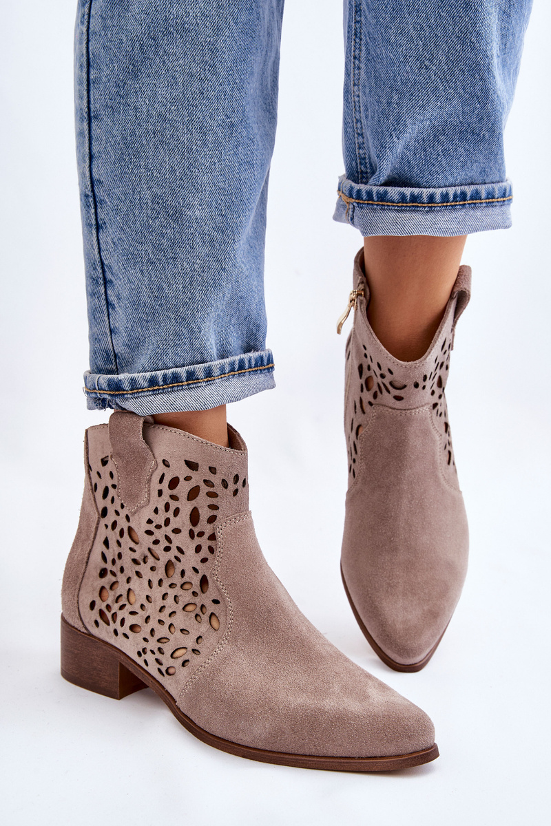 Botki Damskie Ażurowe Jasnobrązowe Lewski Shoes 2909