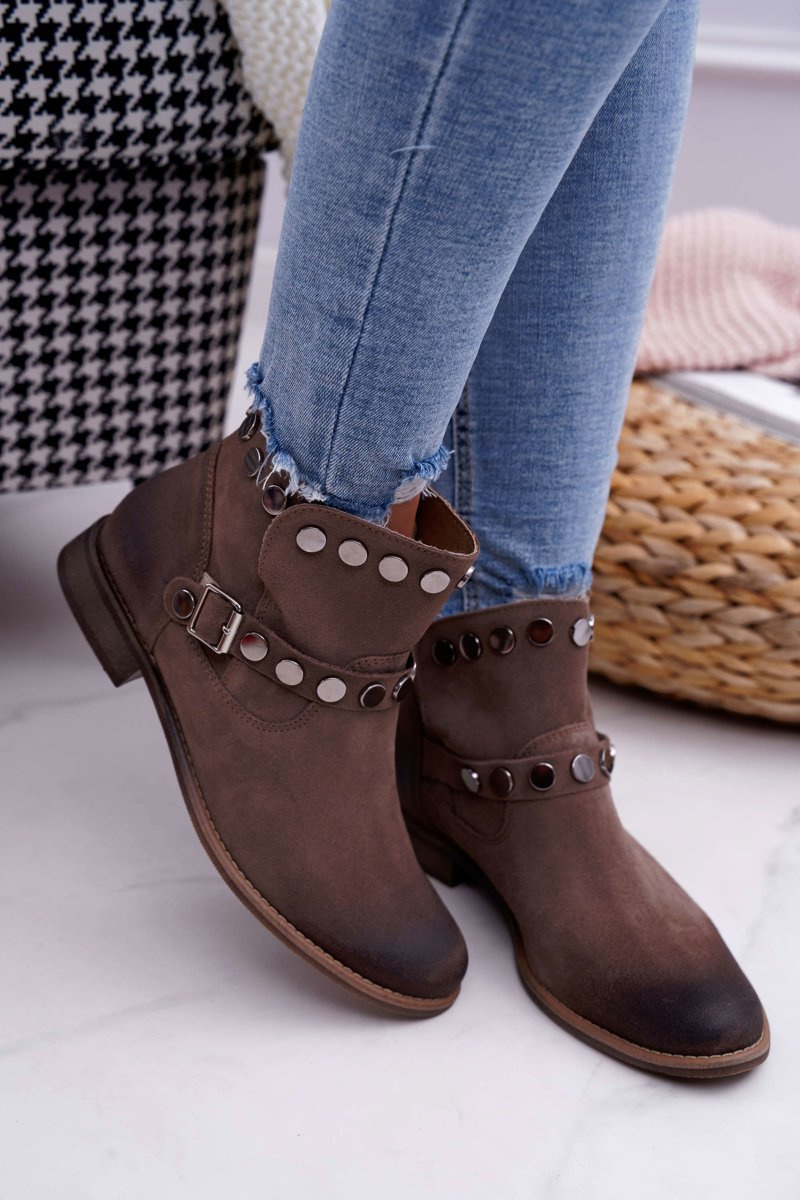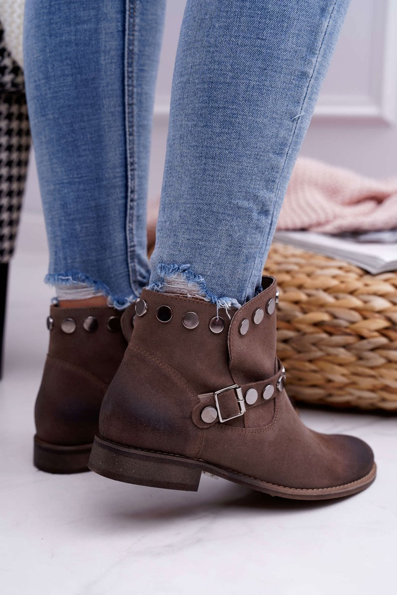 Botki Damskie Beżowe Welurowe Exquisite 1172
