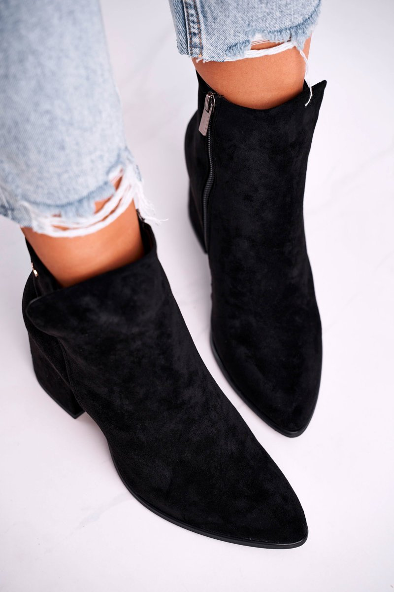 Botki Damskie Ciepłe Eko Zamsz Czarne So Good