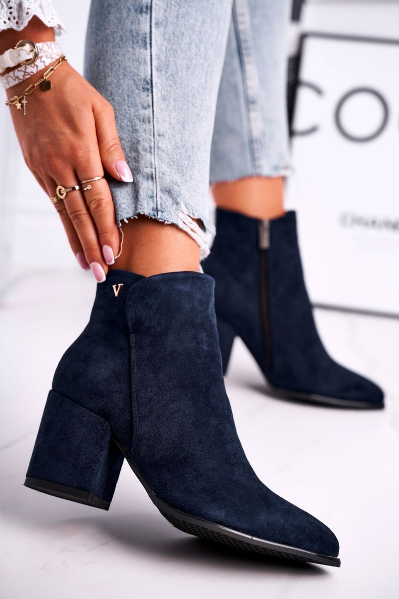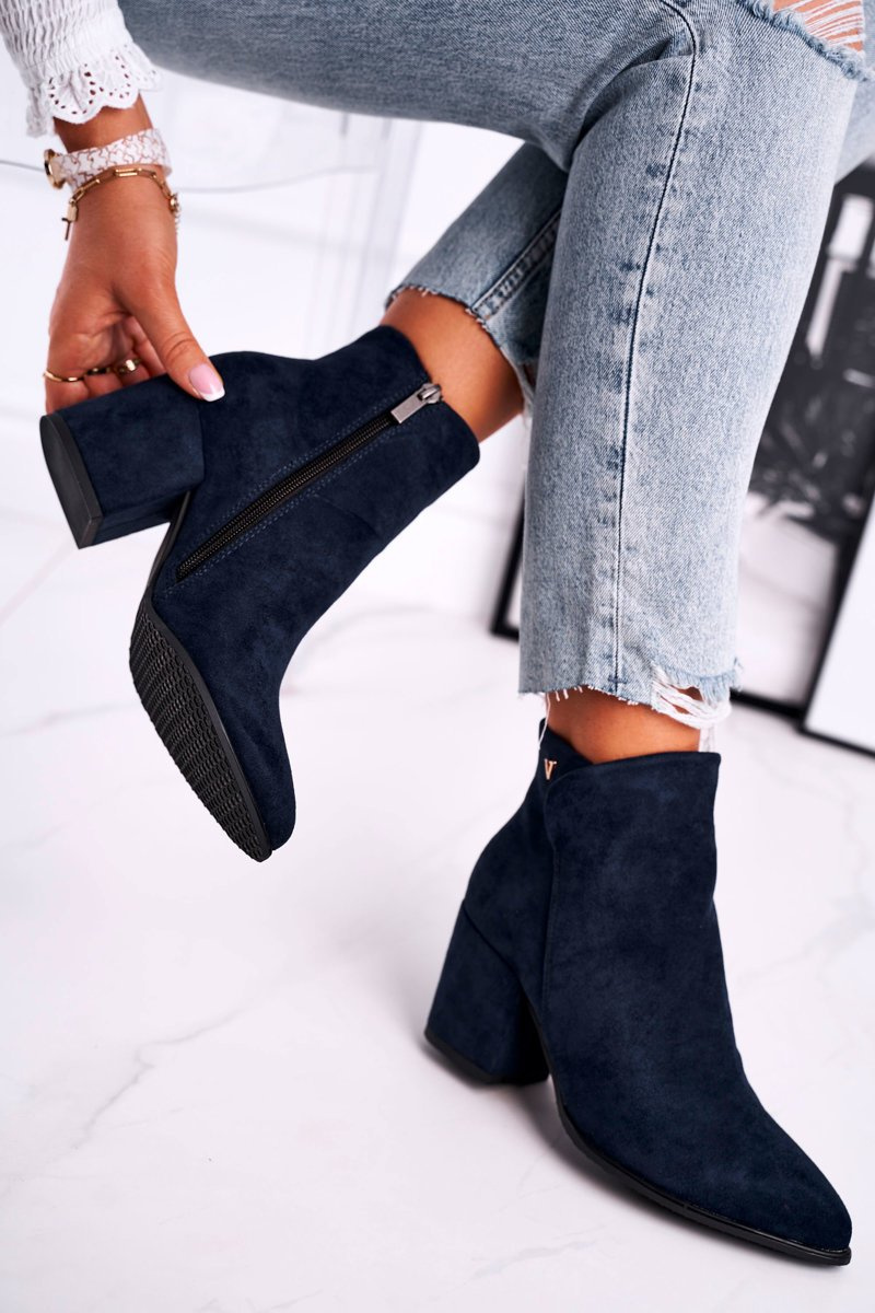 Opinie o Botki Damskie Ciepłe Eko Zamsz Granatowe So Good