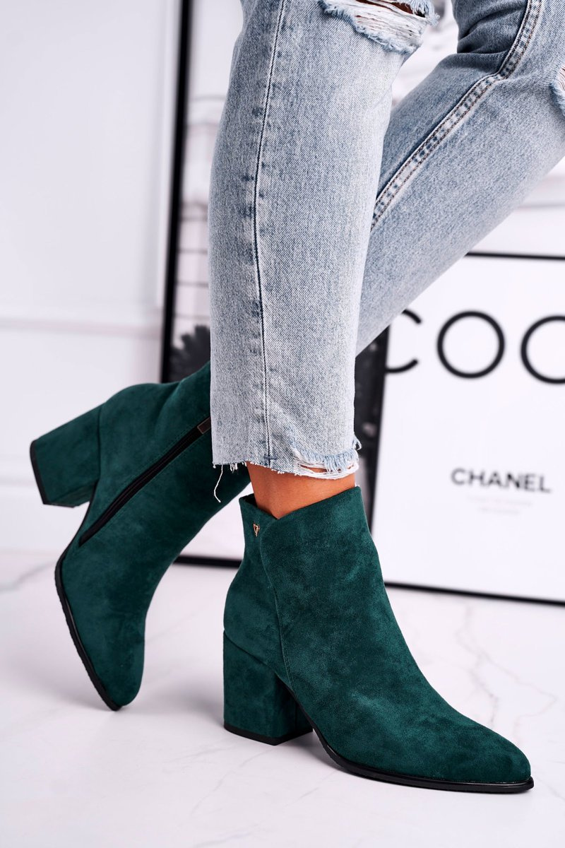 Botki Damskie Ciepłe Eko Zamsz Zielone So Good