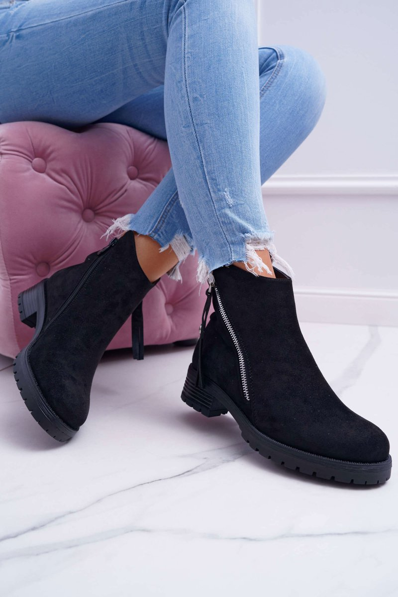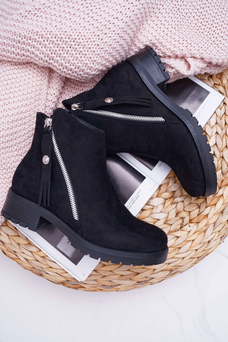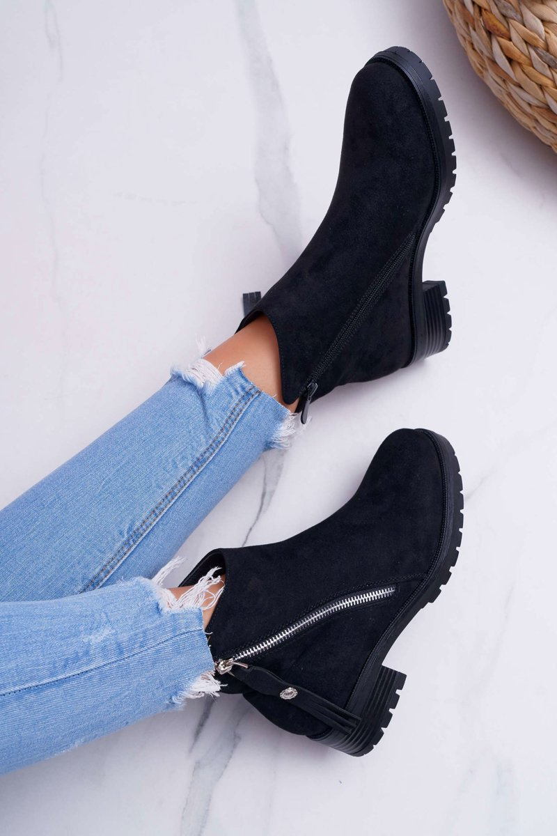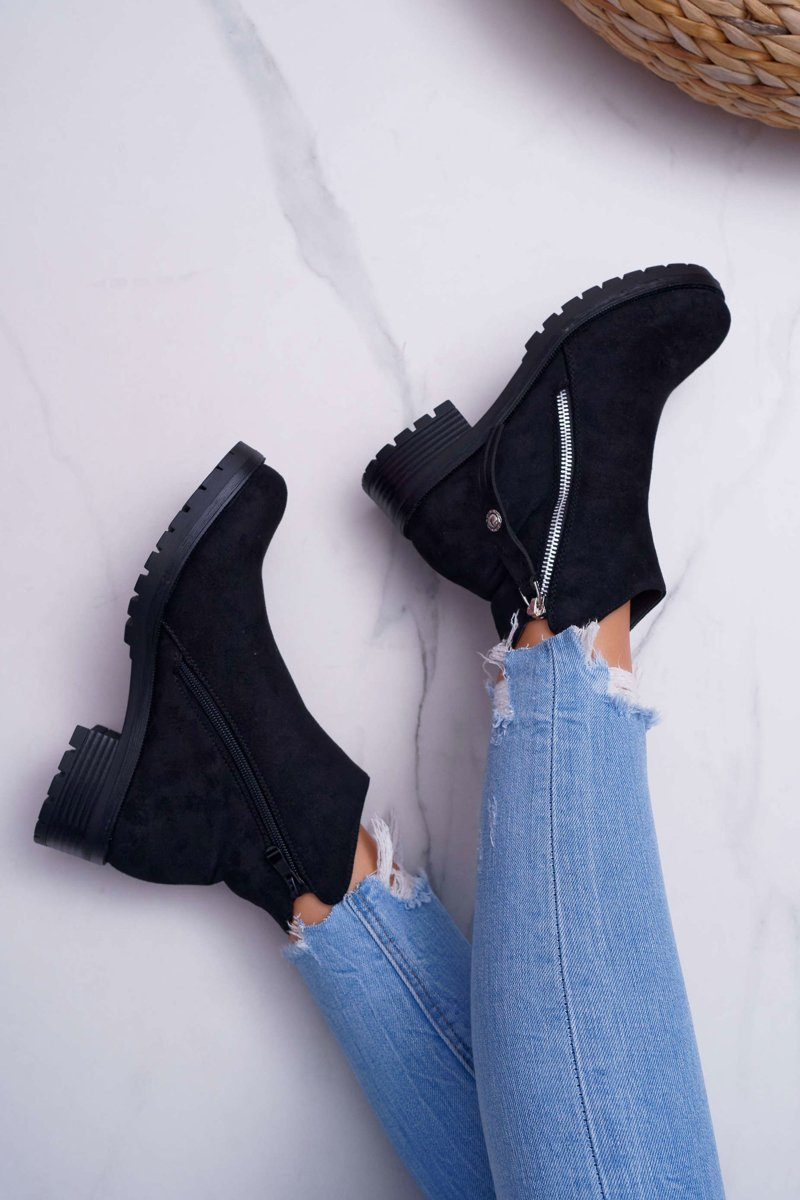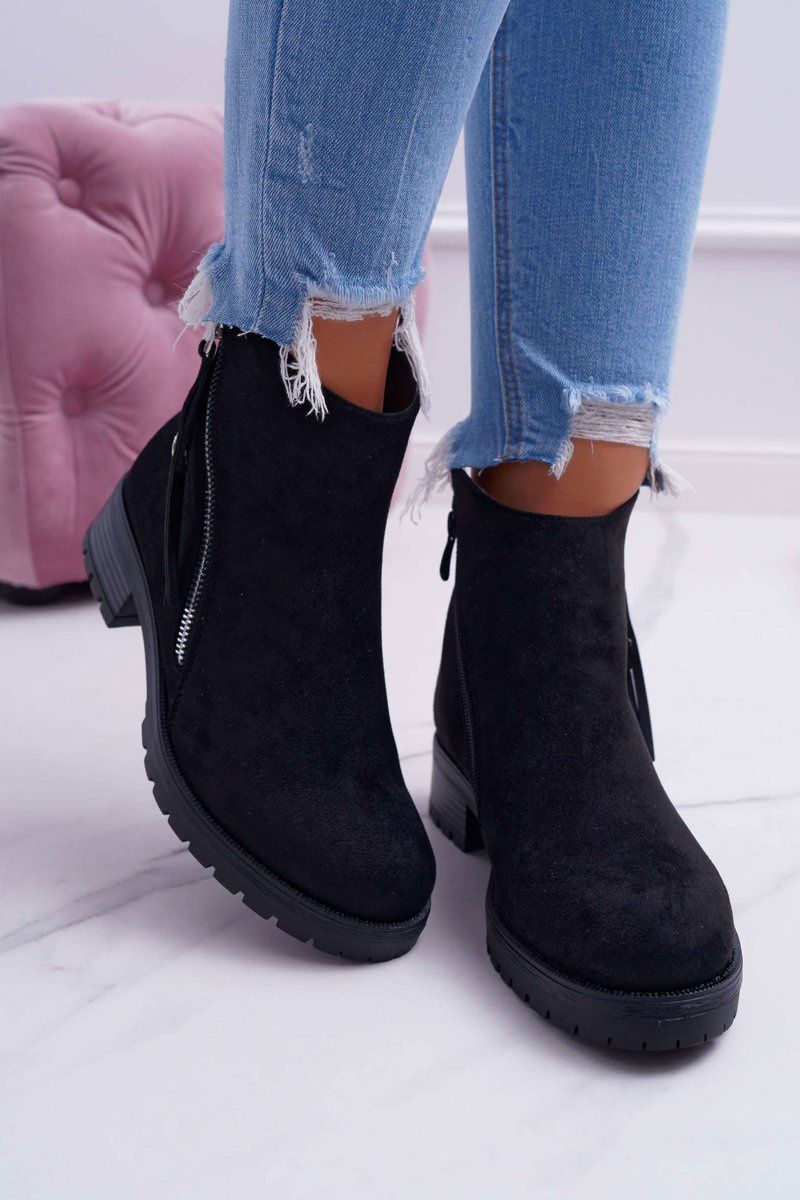 Opinie o Botki Damskie Ciepłe Zamszowe Dwa Suwaki Czarne Ohoo