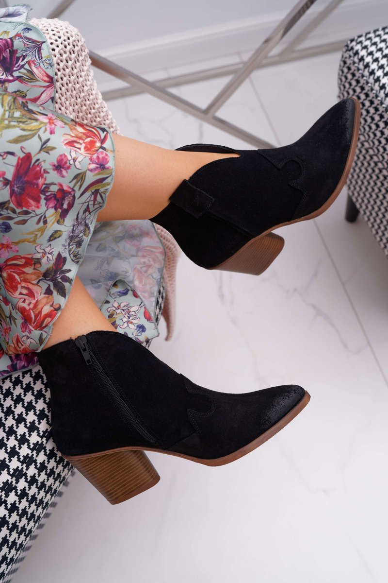 Botki to nie tylko buty na chłodne dni. Świetnie sprawdzą się również podczas tworzenia wiosennych stylizacjach. Botki posiadają zamek z boku cholewki ułatwiający zakładanie.. W całości wykonane ze skóry zamszowej. Produkt Polski, co gwarantuje nam komfort oraz wysoką jakość wykonania. Idealne do zwiewnych sukienek oraz jeansowych spodni. Przy wyborze rozmiaru prosimy sugerować się tabelą rozmiarów.