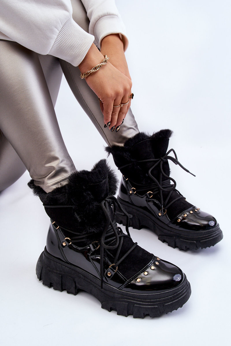 Botki Damskie Futerko Sznurowane Czarne Merron
