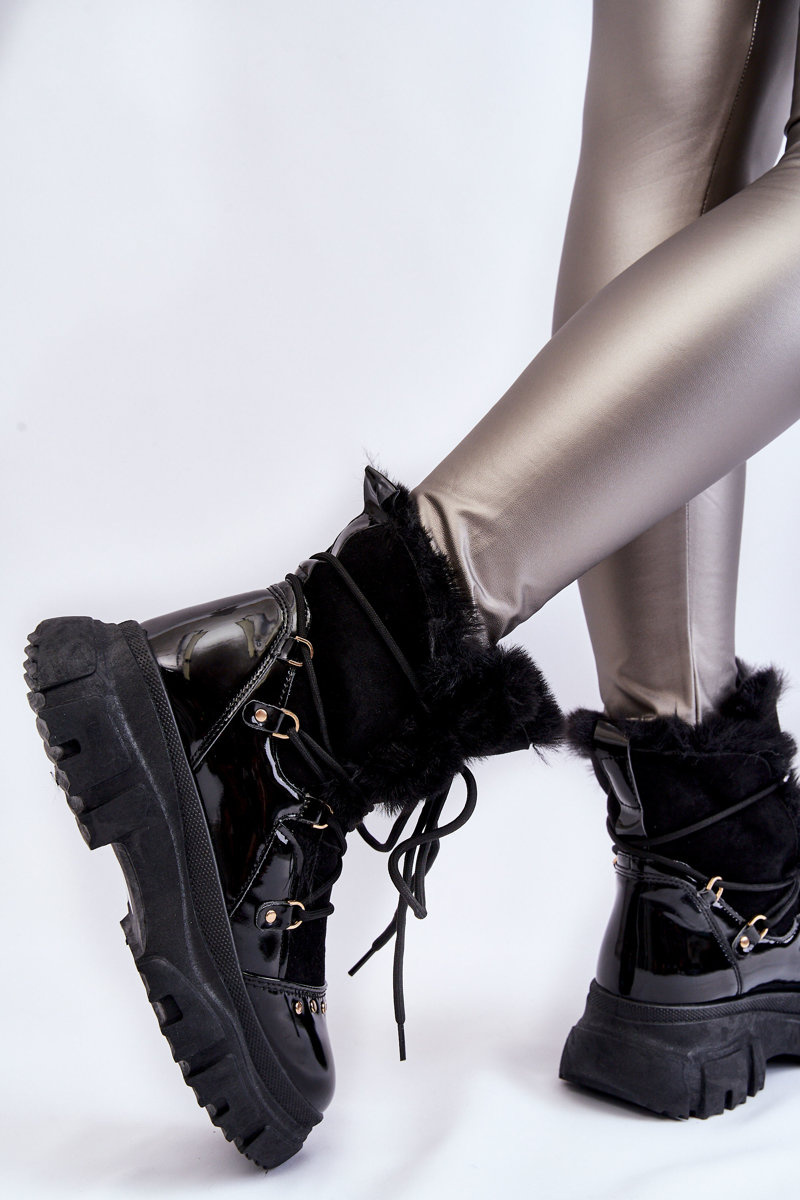 Opinie o Botki Damskie Futerko Sznurowane Czarne Merron