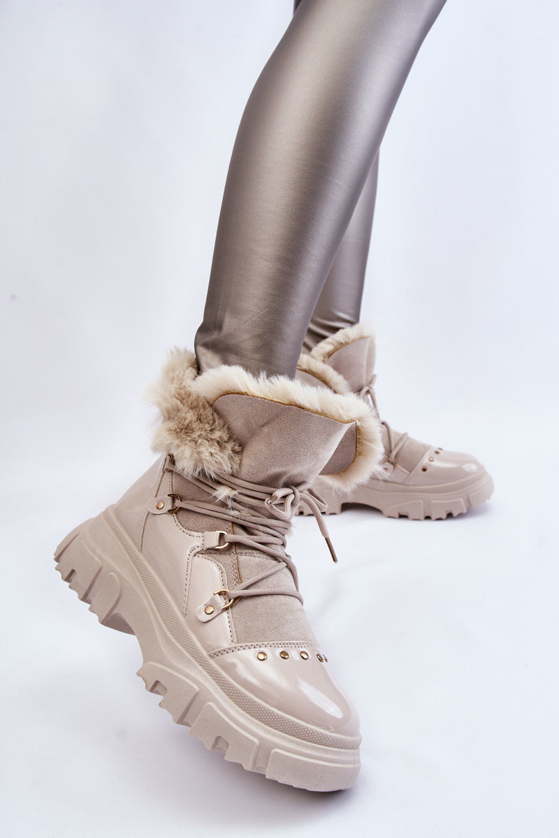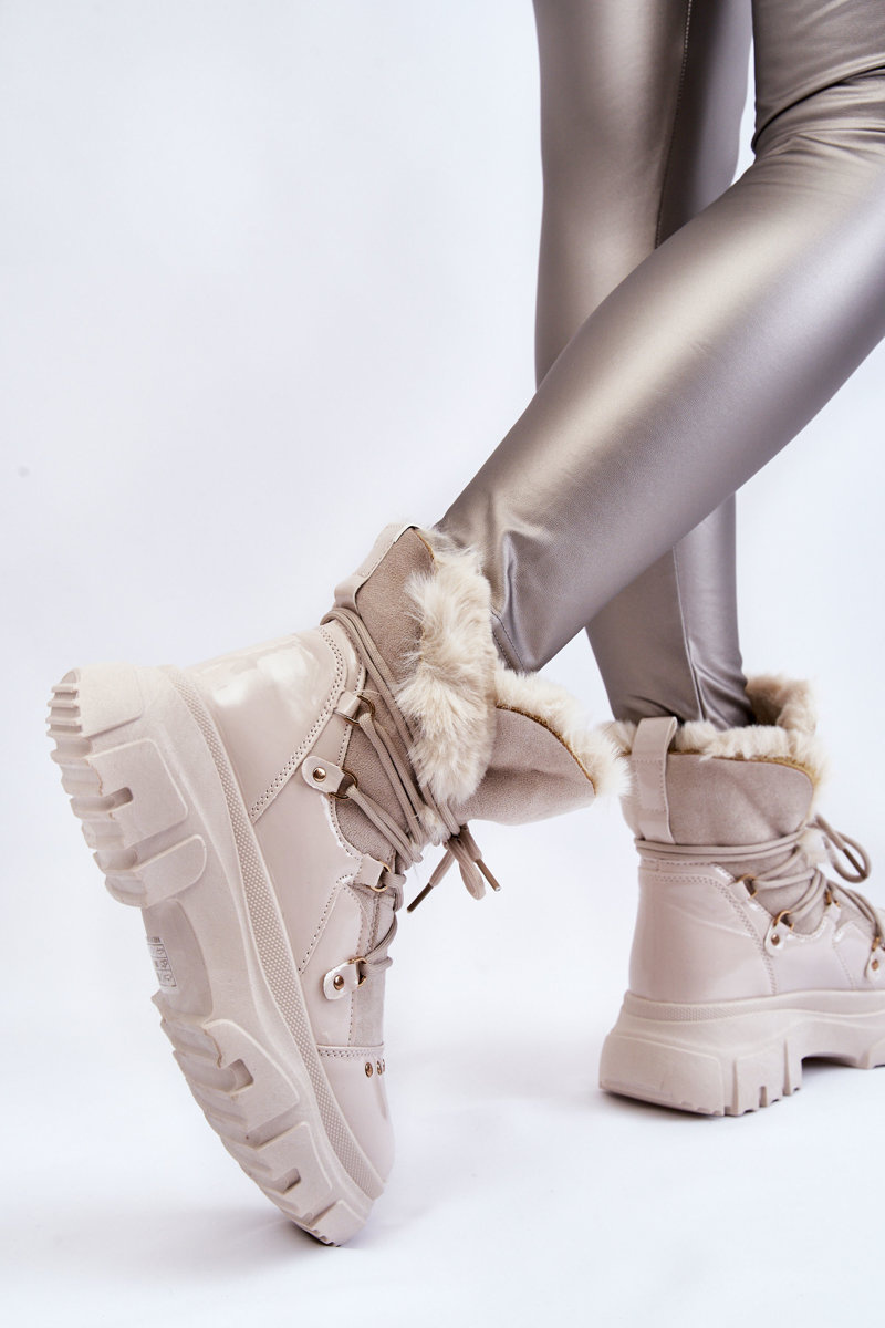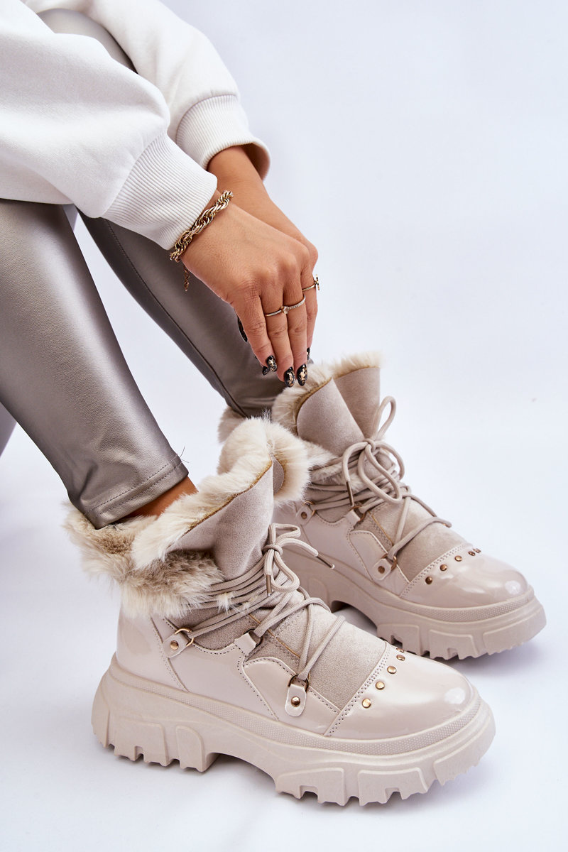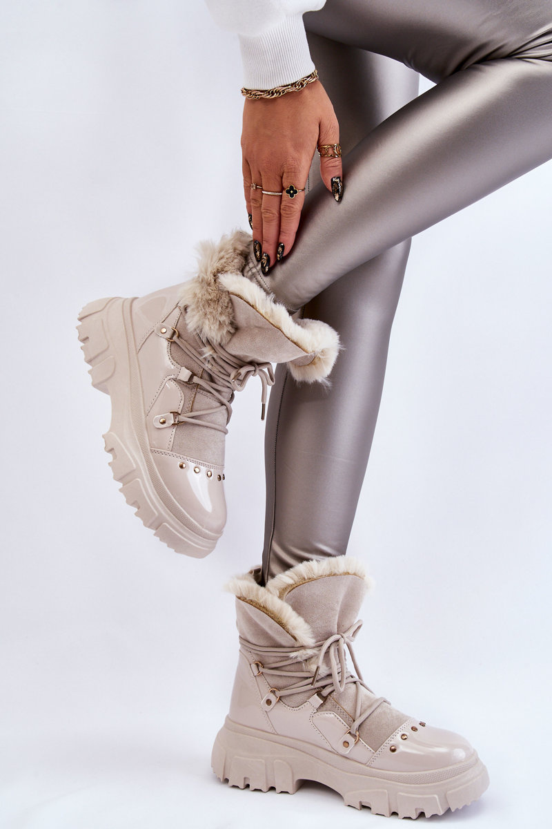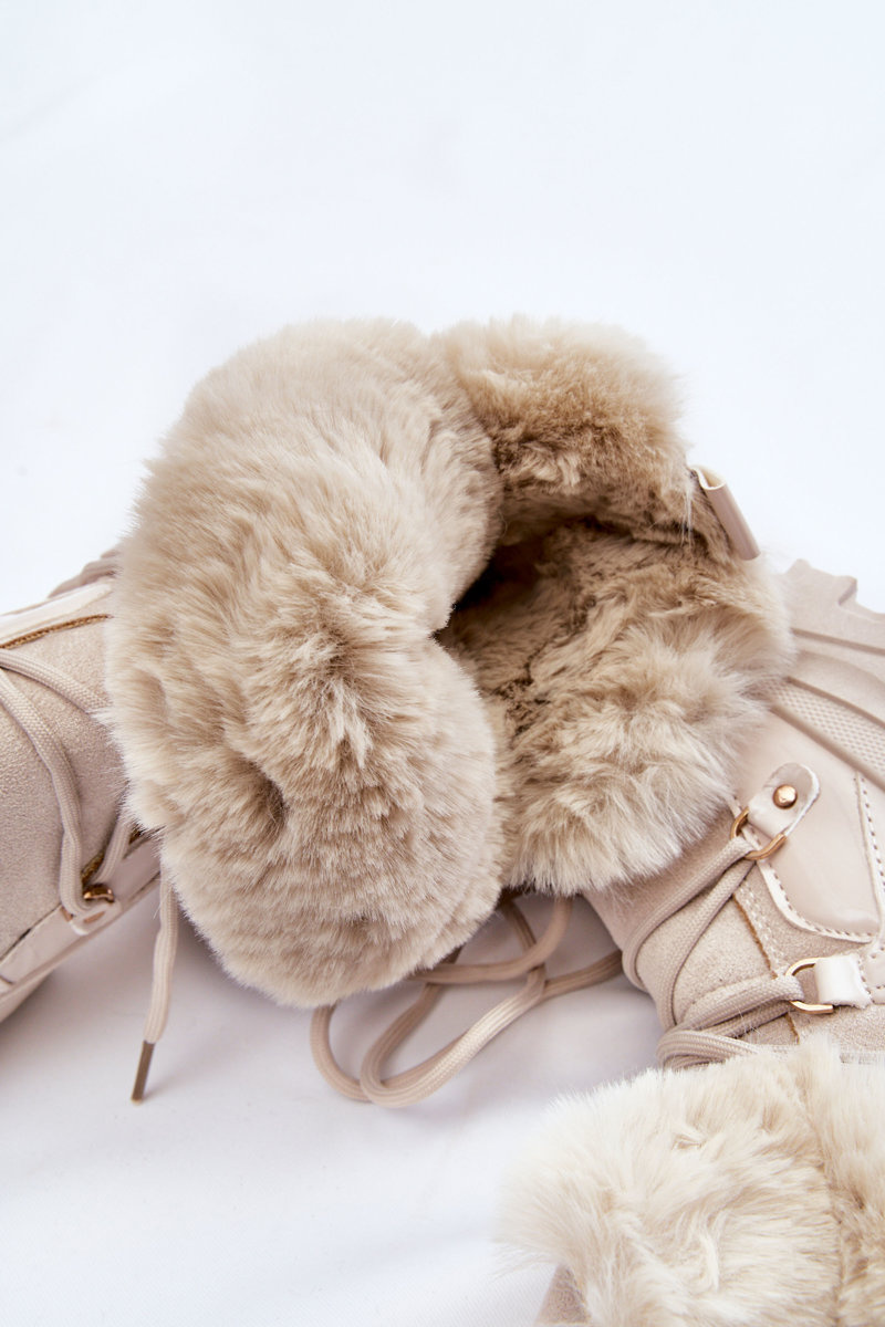Botki Damskie Futerko Sznurowane Jasnobeżowe Merron