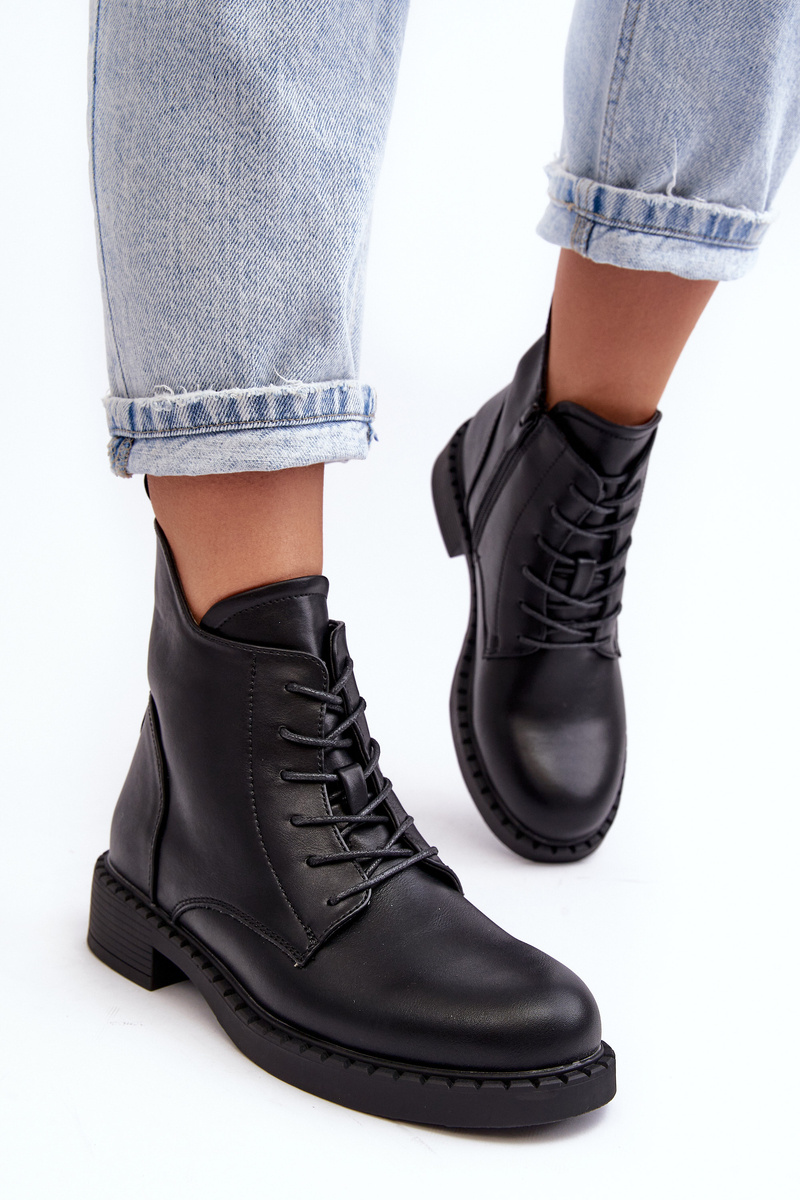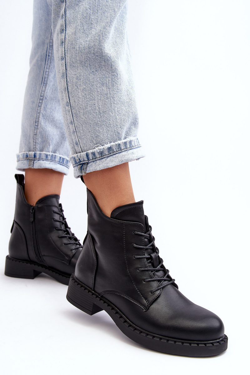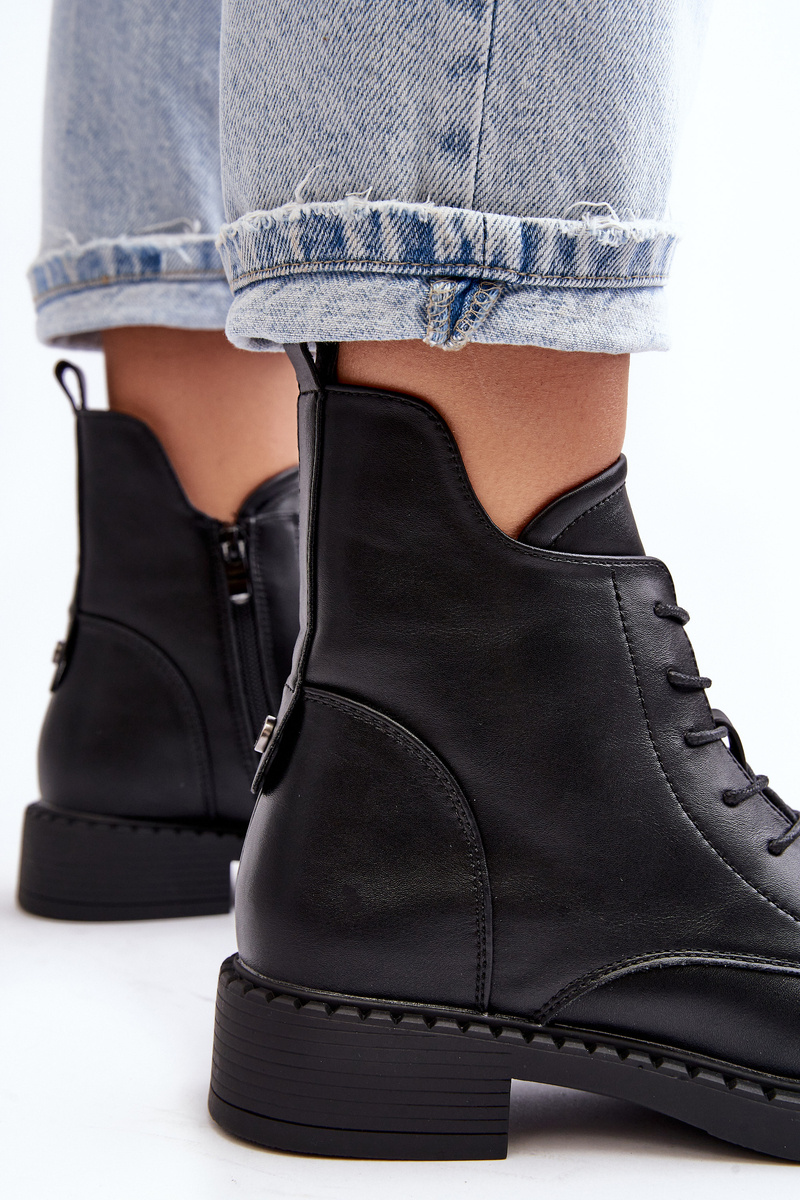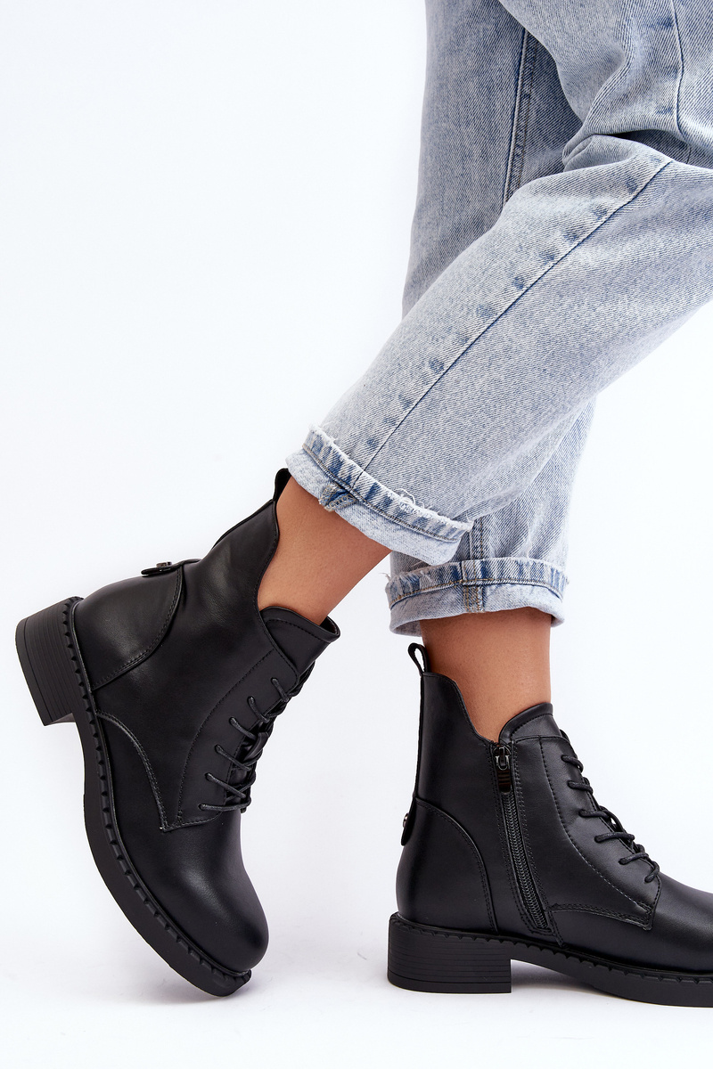 Botki Damskie Klasyczne Płaski Obcas Czarne Ballisa 23BT35-6435