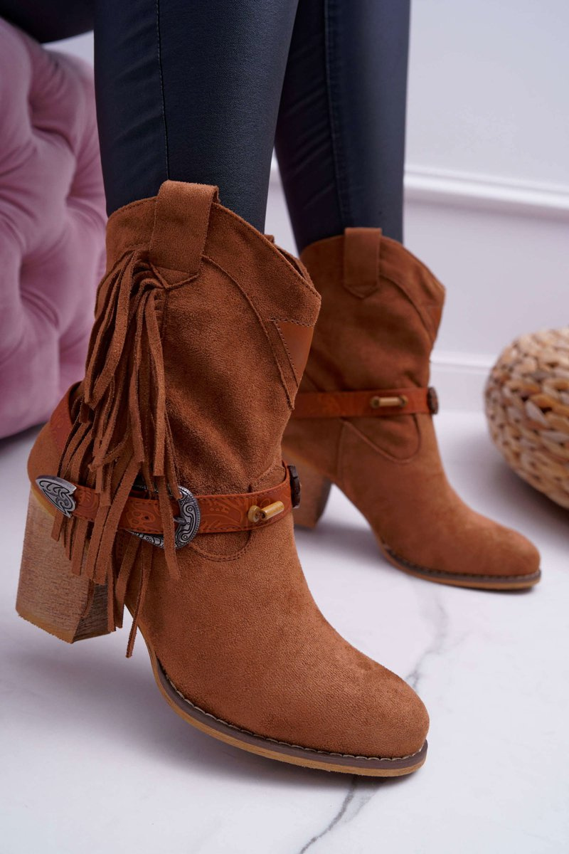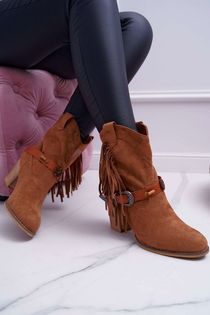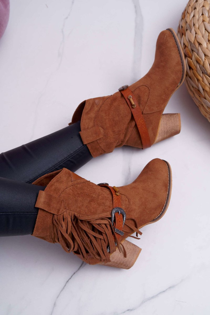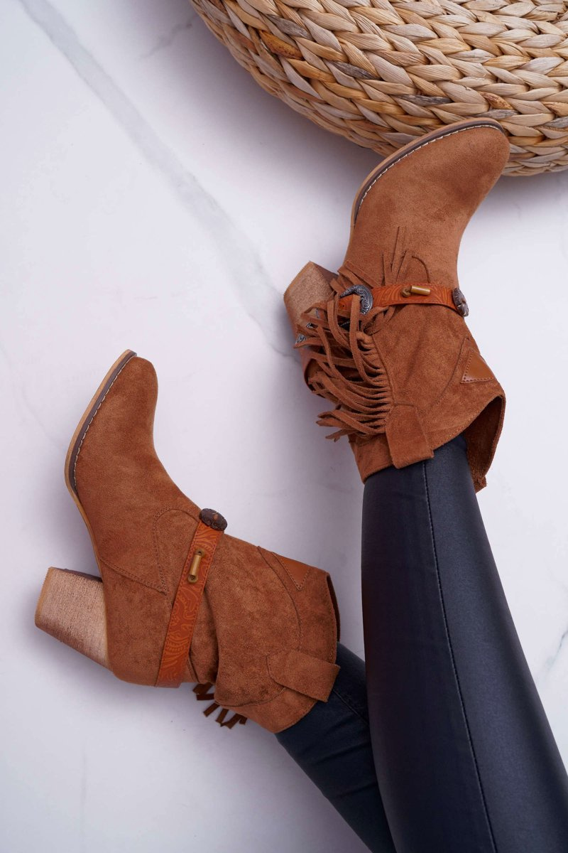 Botki Damskie Kowbojki z Klamrą Brązowe Marciapo