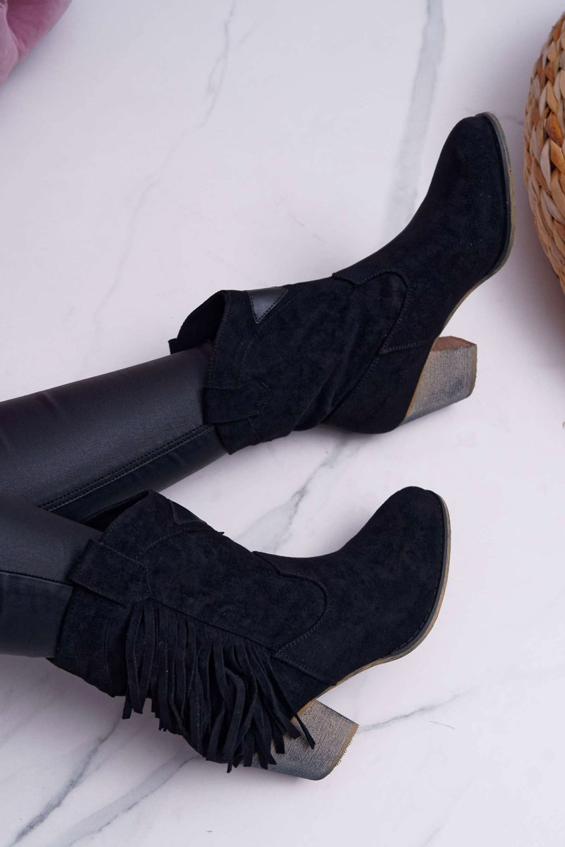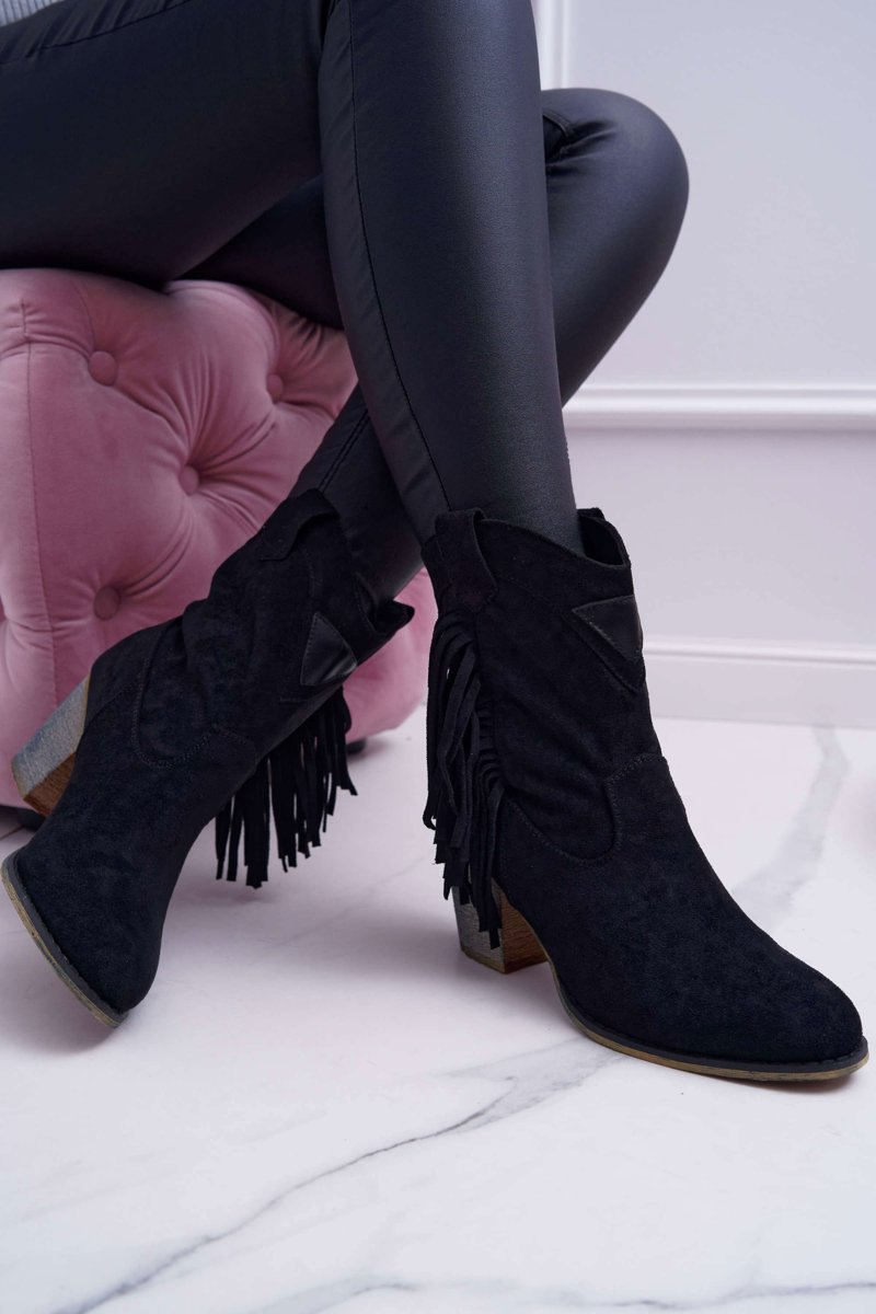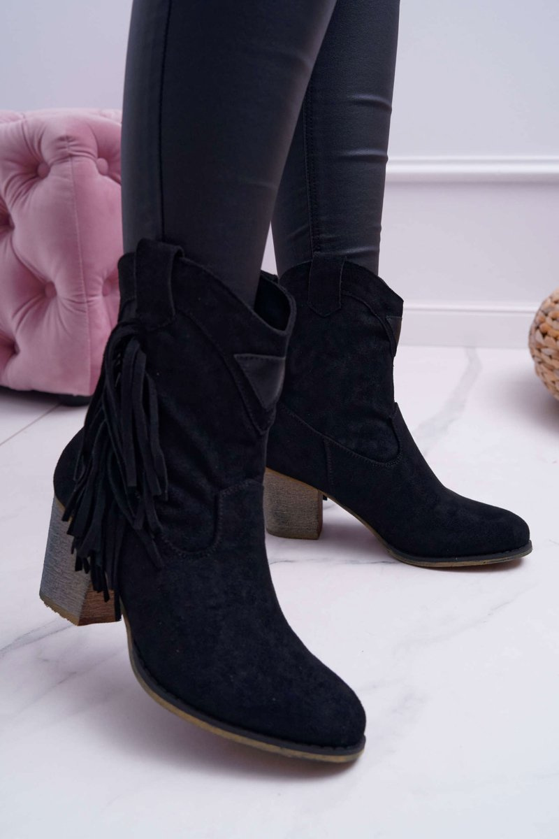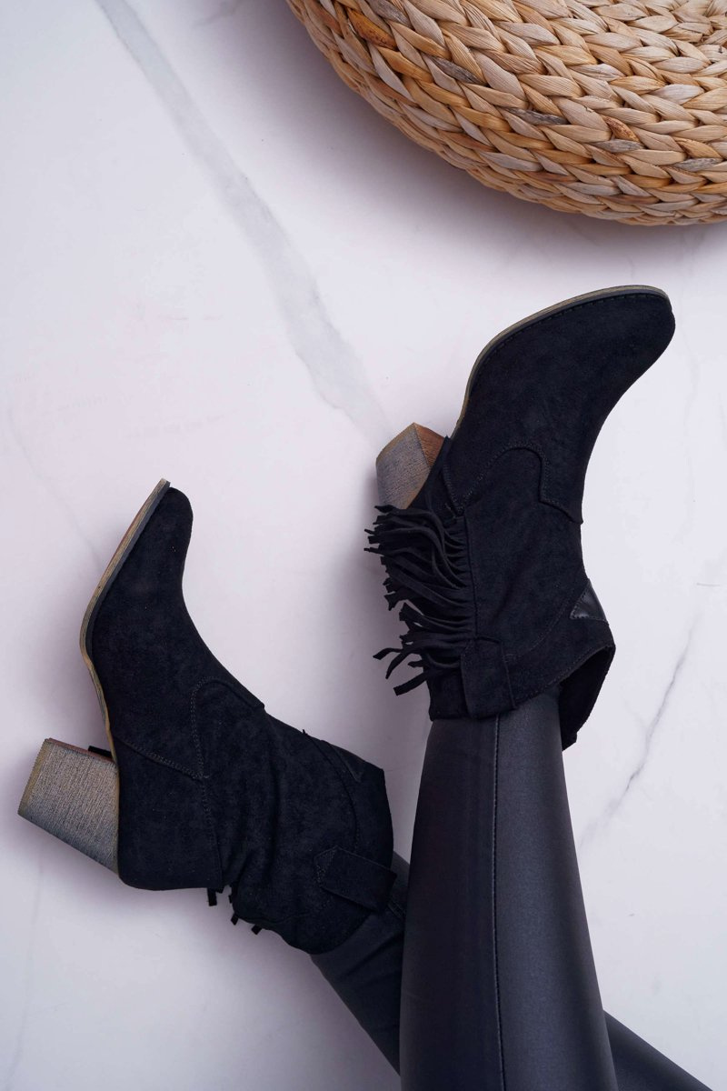 Botki Damskie Kowbojki z Klamrą Czarne Marciapo
