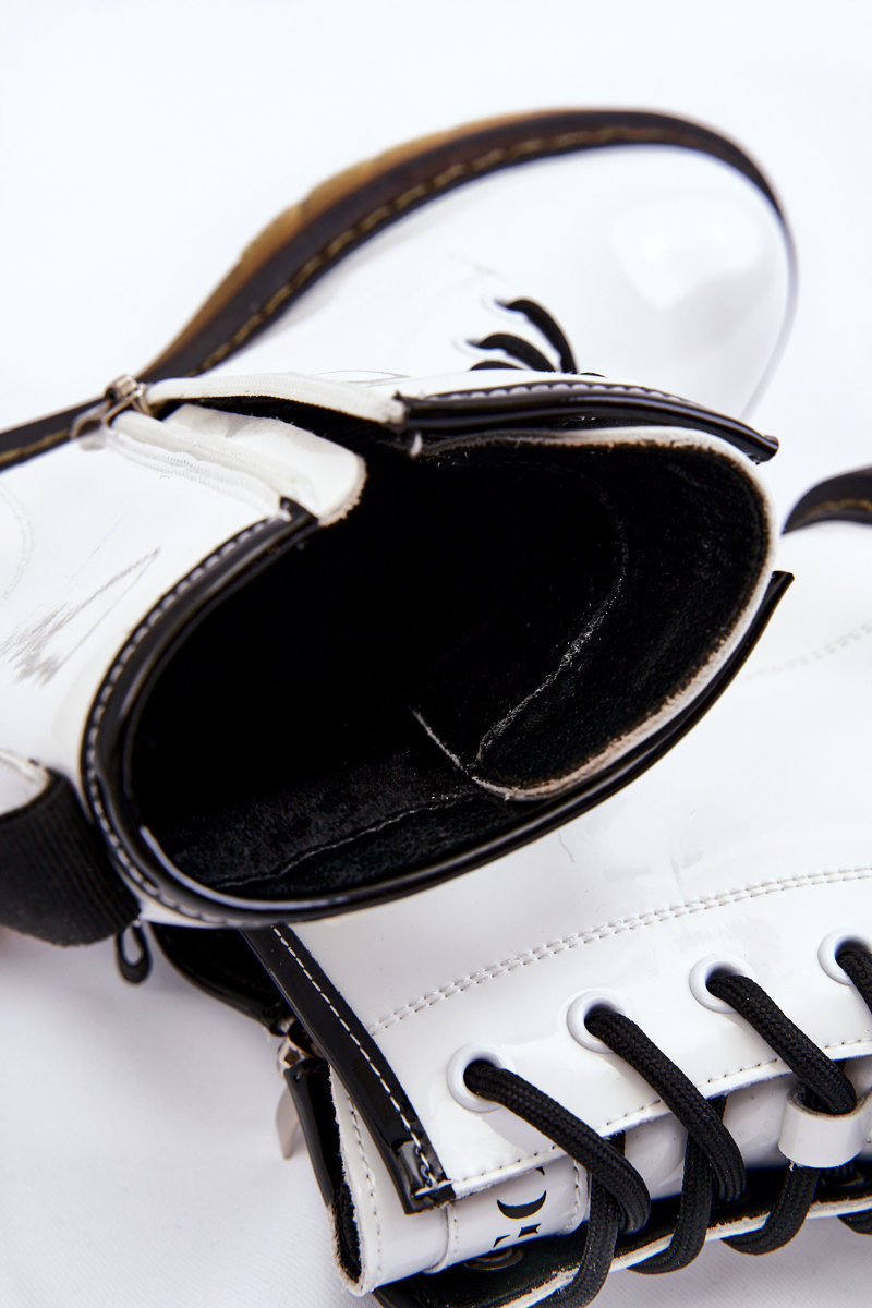 Botki Damskie Lakier Ocieplane Białe GOE II2N4051