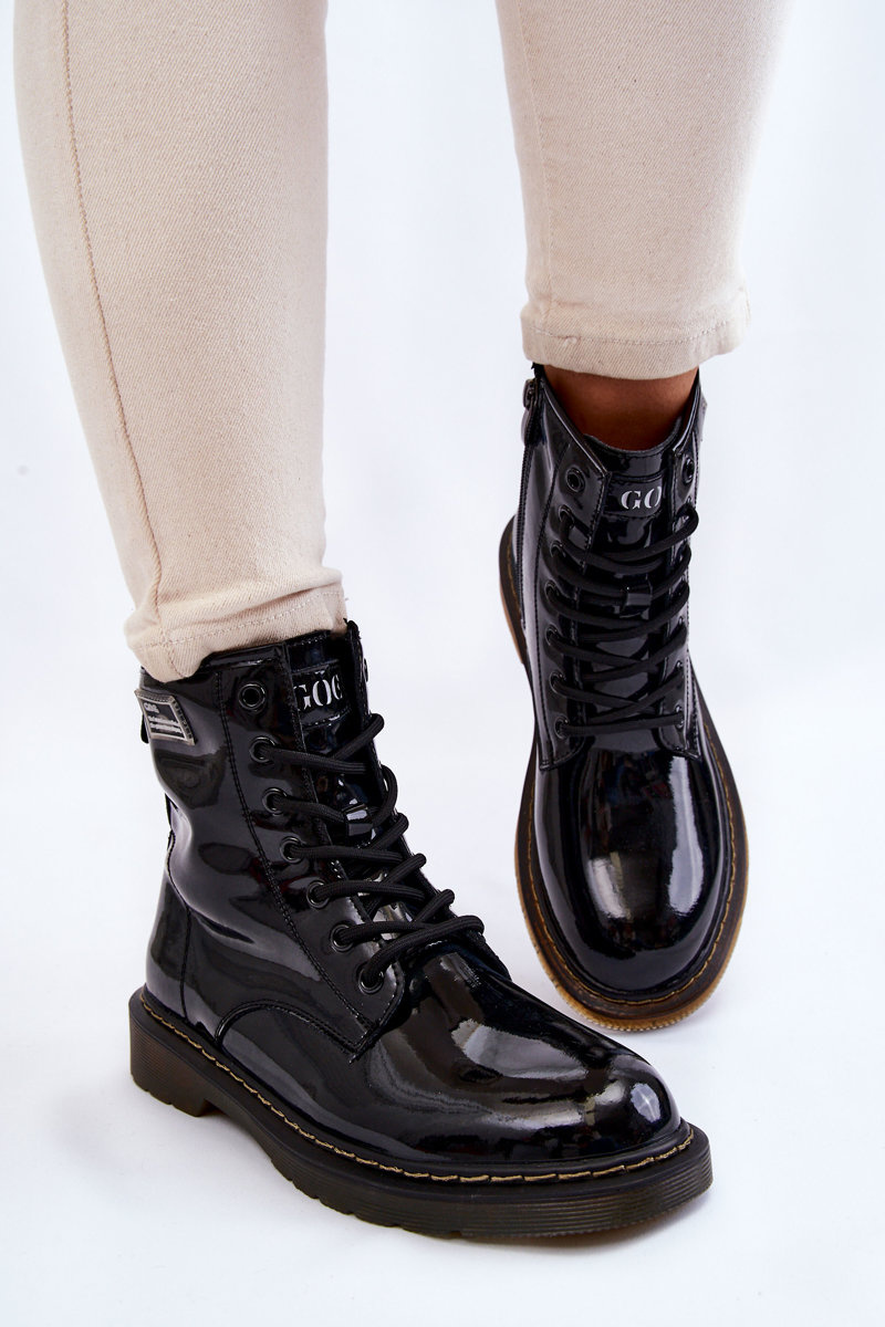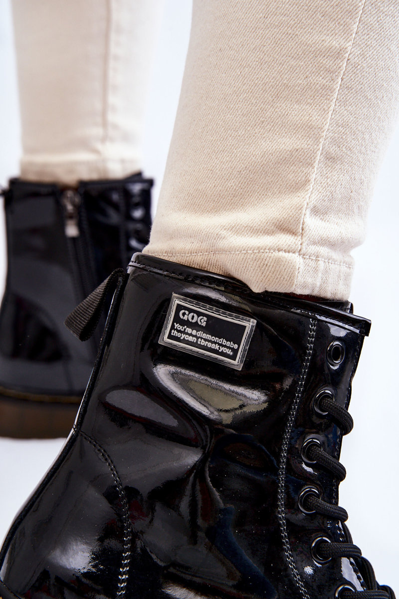 Botki Damskie Lakier Ocieplane Czarne GOE II2N4050