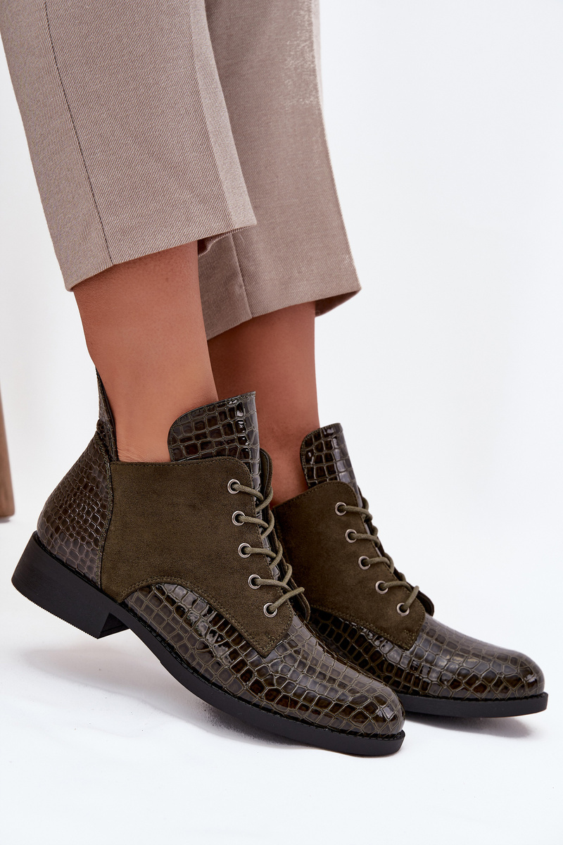 Botki Damskie Lakierowane Tłoczenie Ocieplane Ciemnozielone Vinceza 16477