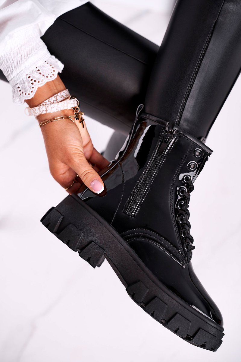 Botki Damskie Lakierowane Trapery Czarne Linzo