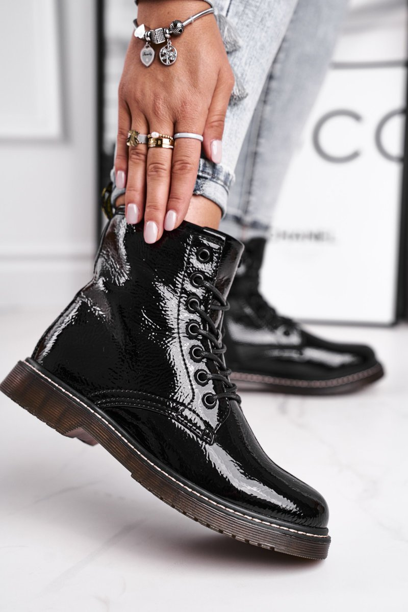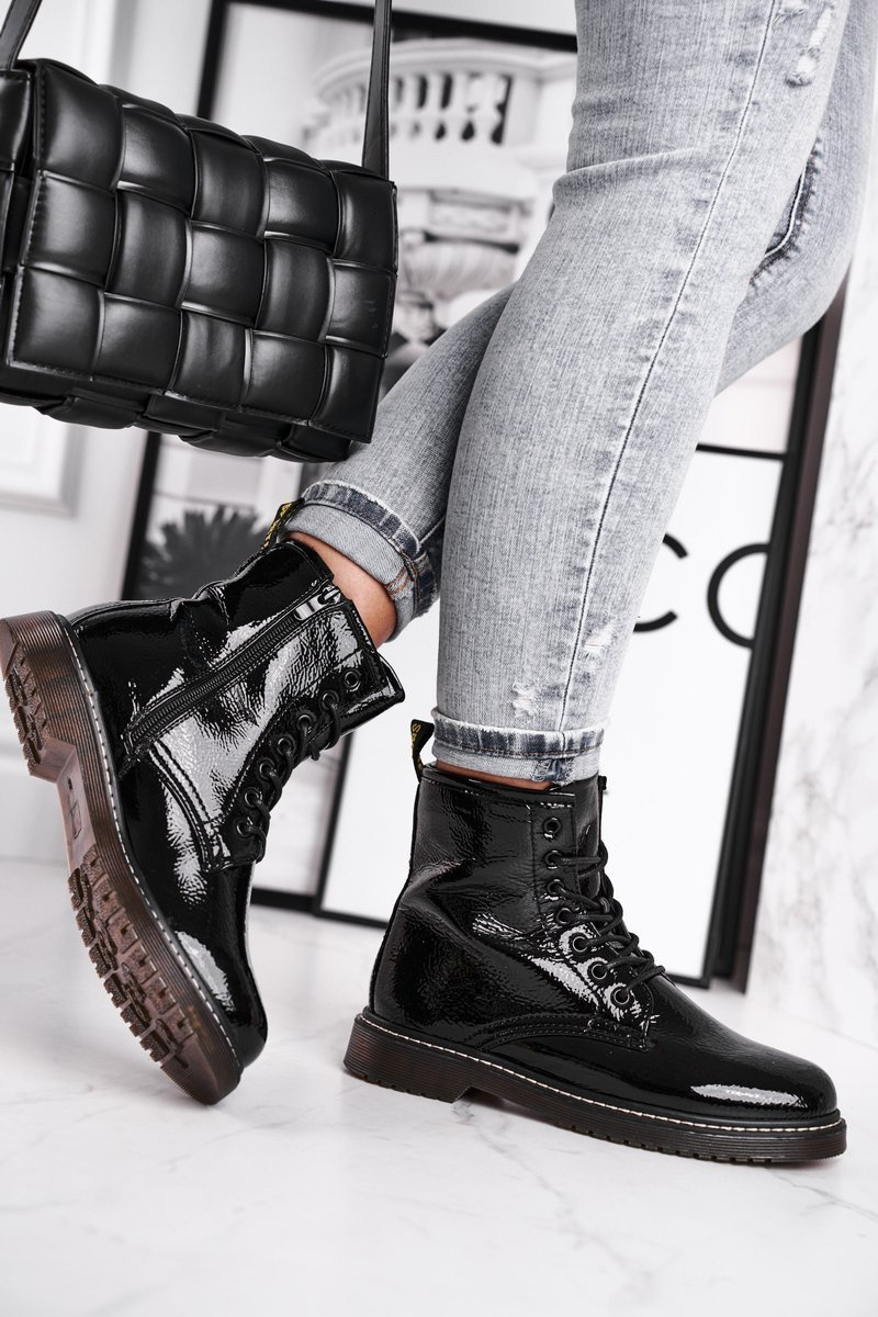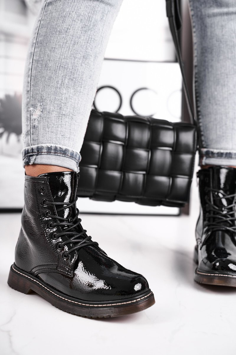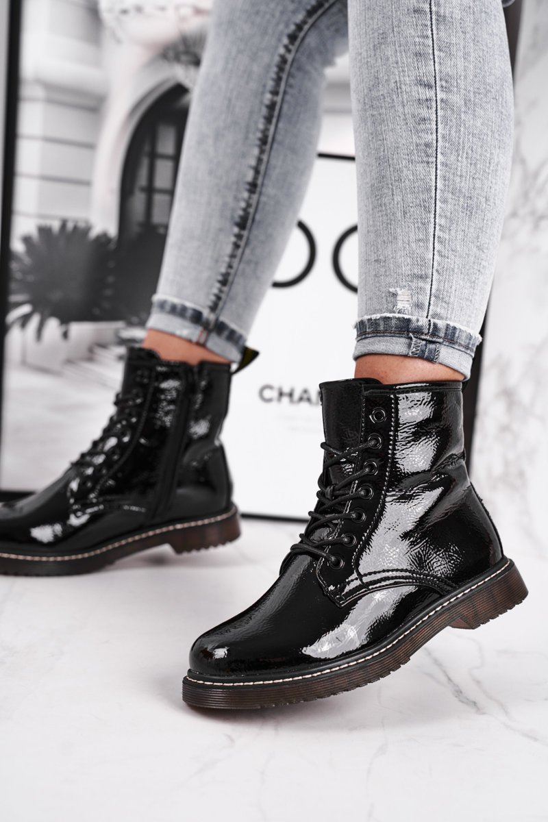 Botki Damskie Lakierowane Trapery Glany Czarne Marita