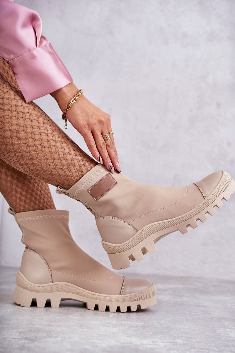 Botki Damskie Materiałowe Beżowe Nicole 2703