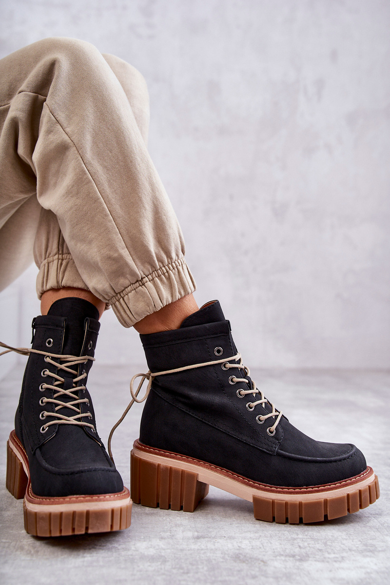 Botki Damskie Modne Ocieplane Czarne Gerda