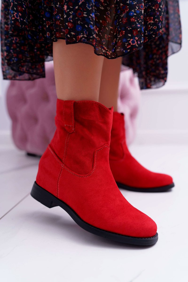 Botki Damskie Na Koturnie Płaski Obcas Ocieplane Za Kostkę Czerwone Demini