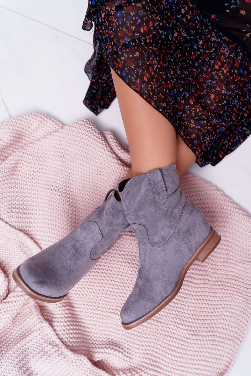 Botki Damskie Na Koturnie Płaski Obcas Ocieplane Za Kostkę Szare Demini