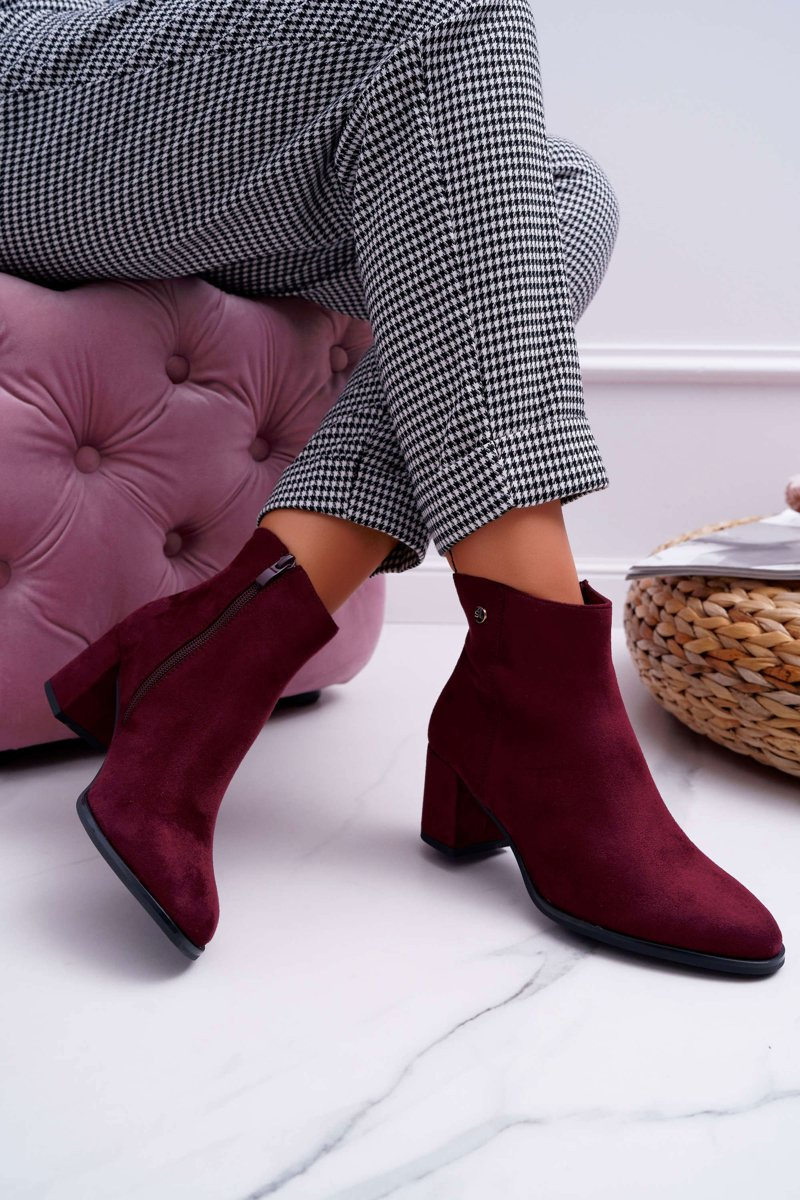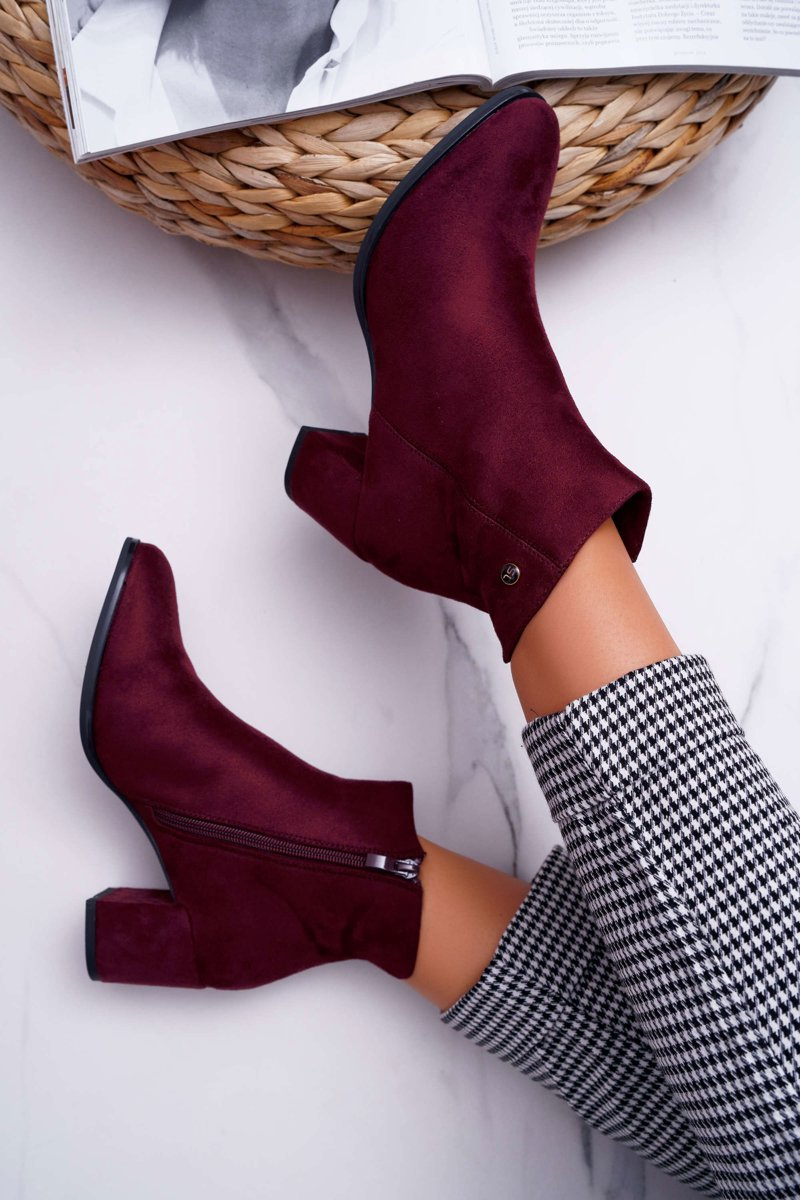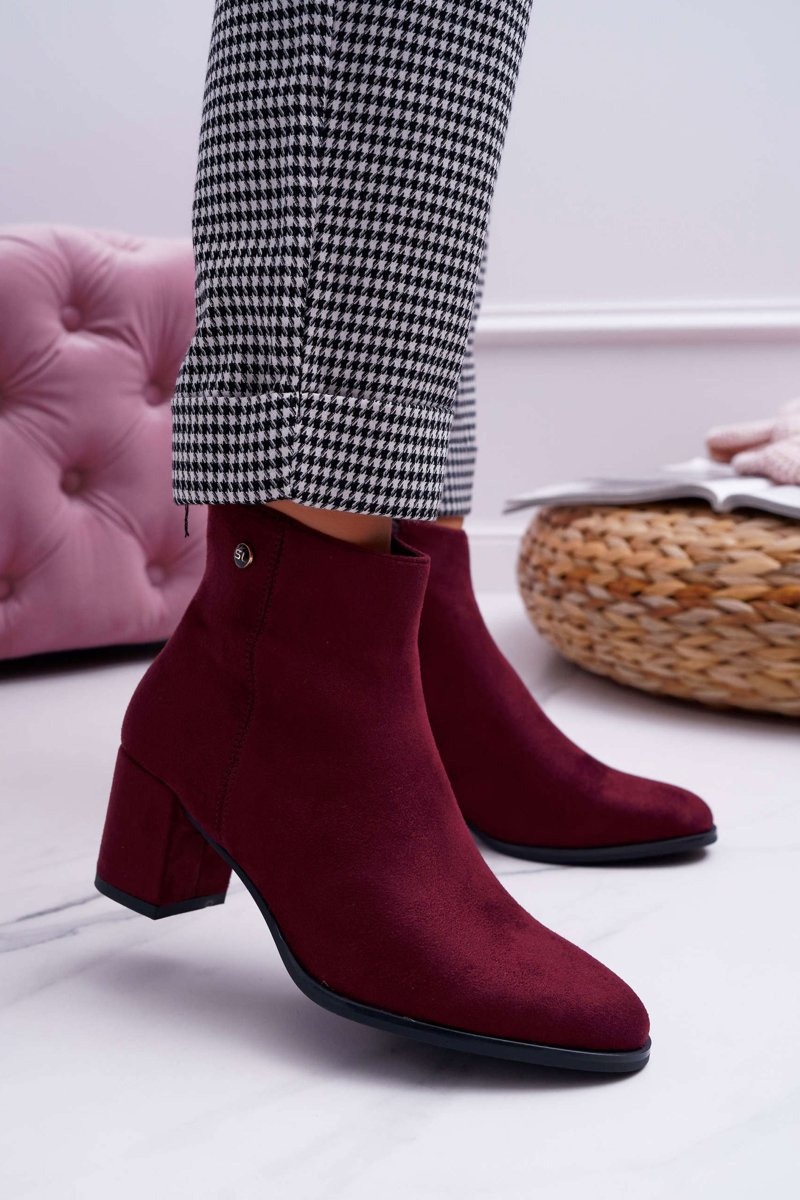 Botki Damskie Na Obcasie Sergio Leone Bordowe BT520