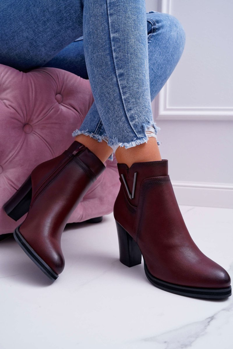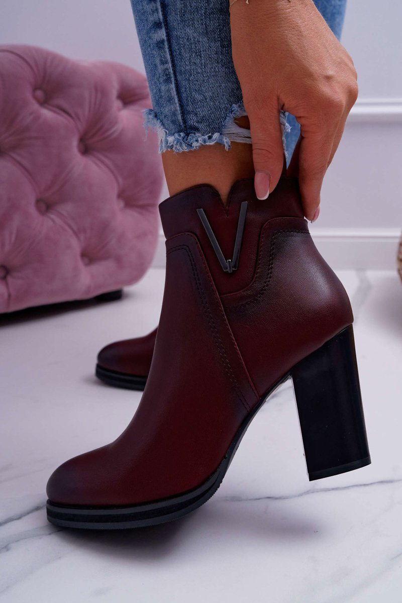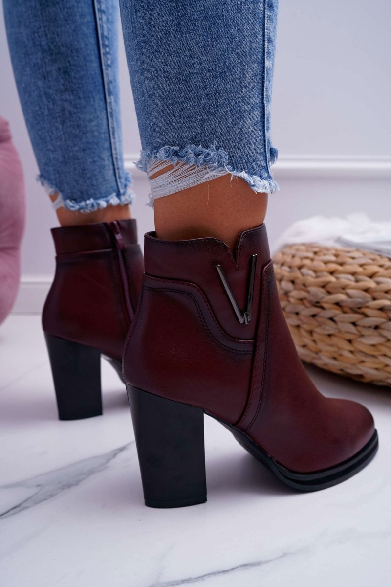 Botki Damskie Na Obcasie Sergio Leone Bordowe BT537
