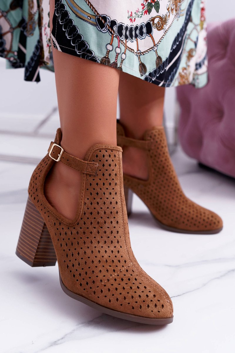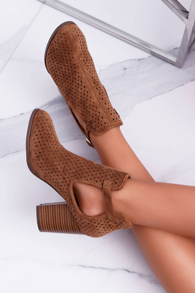Botki Damskie Na Obcasie Wiosenne Ażurowe Camel GoodDay