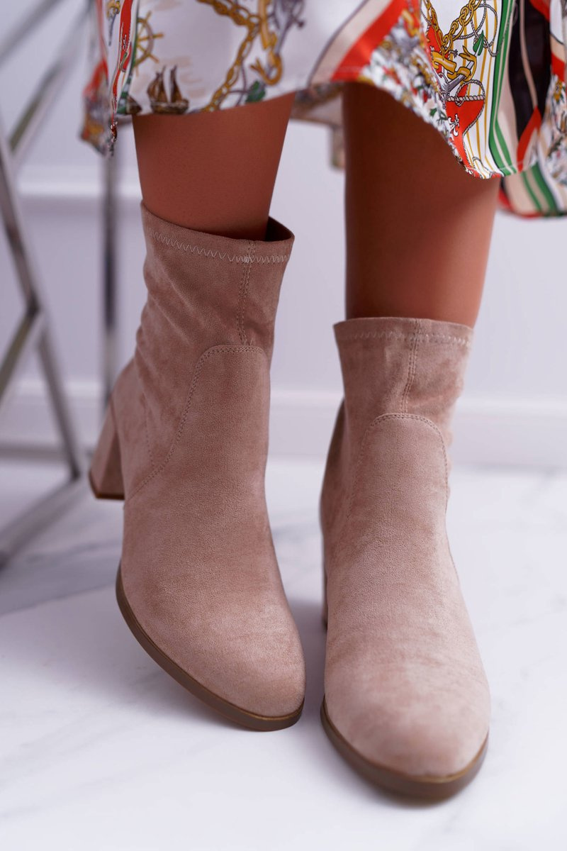 Botki Damskie Na Obcasie Wiosenne Sergio Leone Wsuwane Beżowe LikeStar