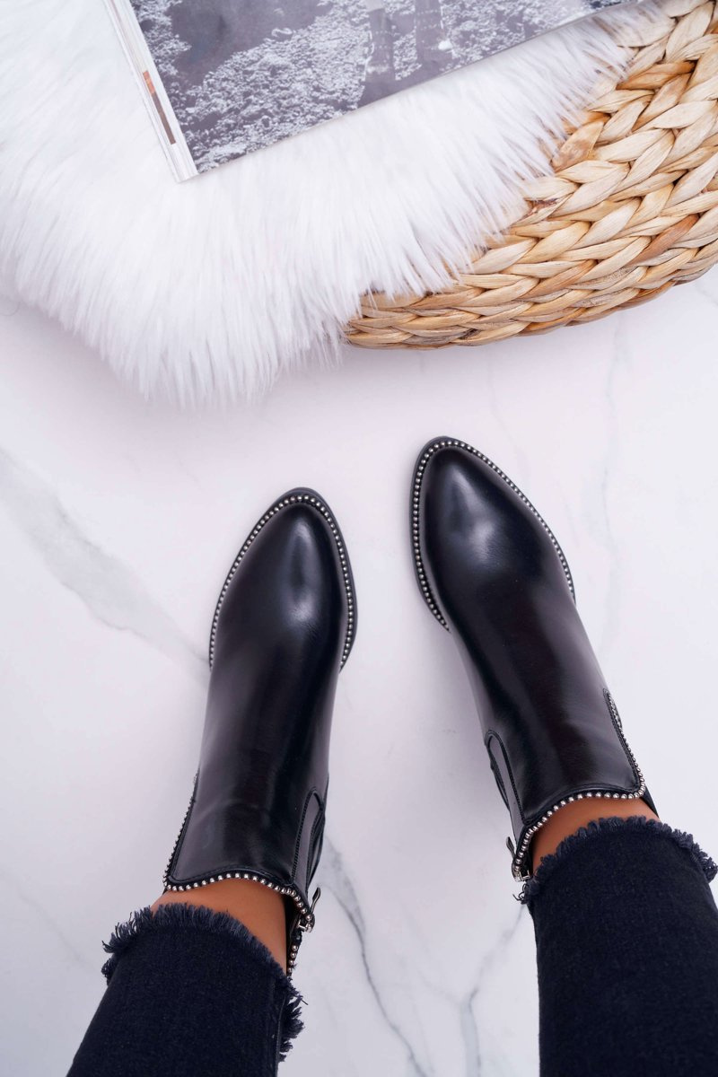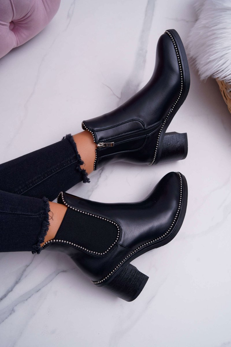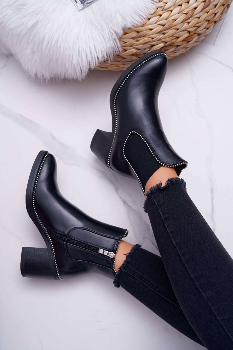 Botki Damskie Na Obcasie Z Dżetami Czarne Rhythmic