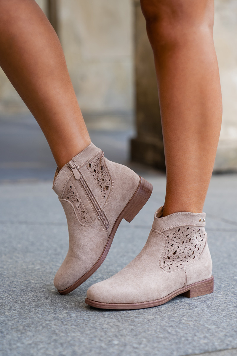 Botki Damskie Na Płaskim Obcasie Ażurowe Beżowe S.Barski HY51-113