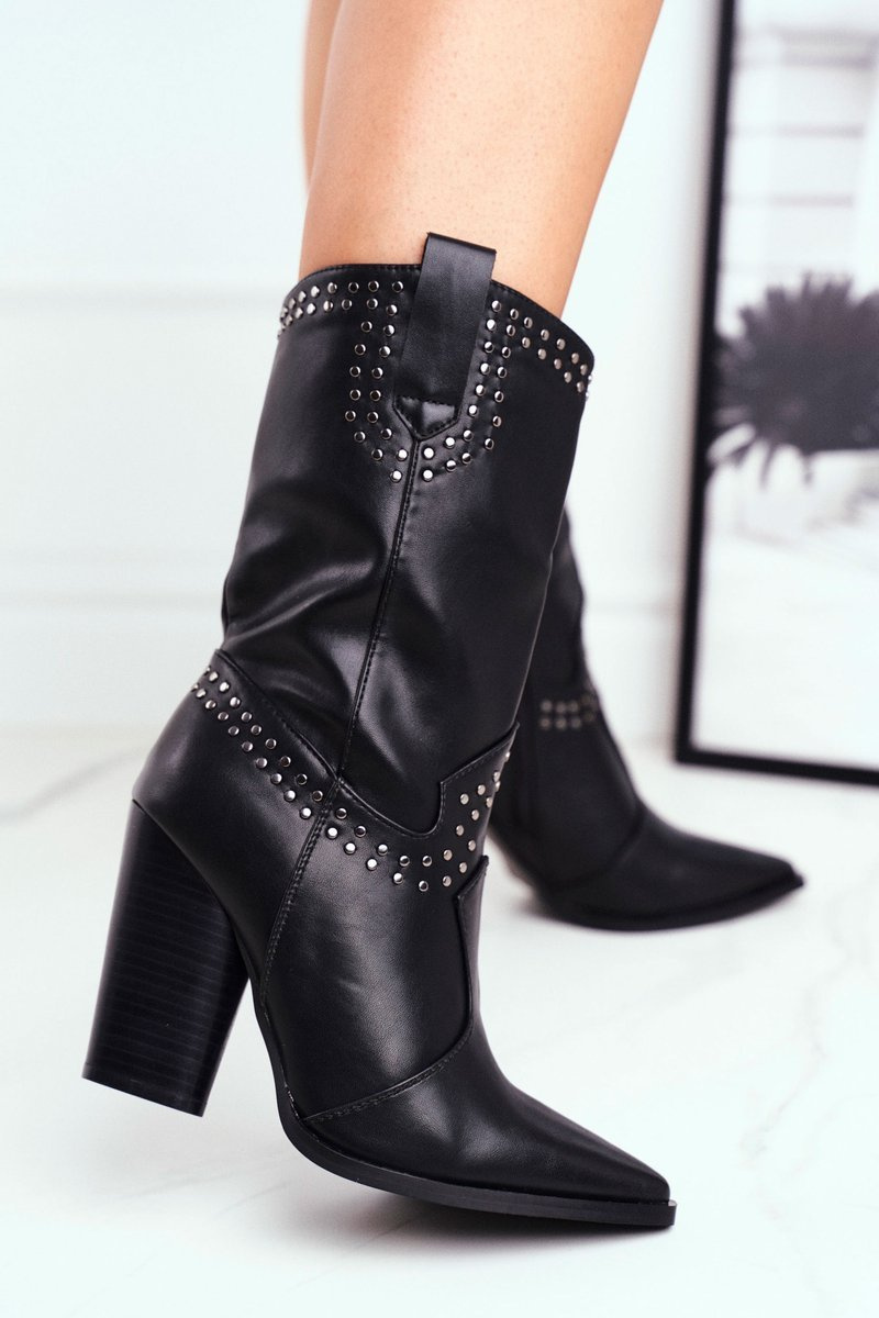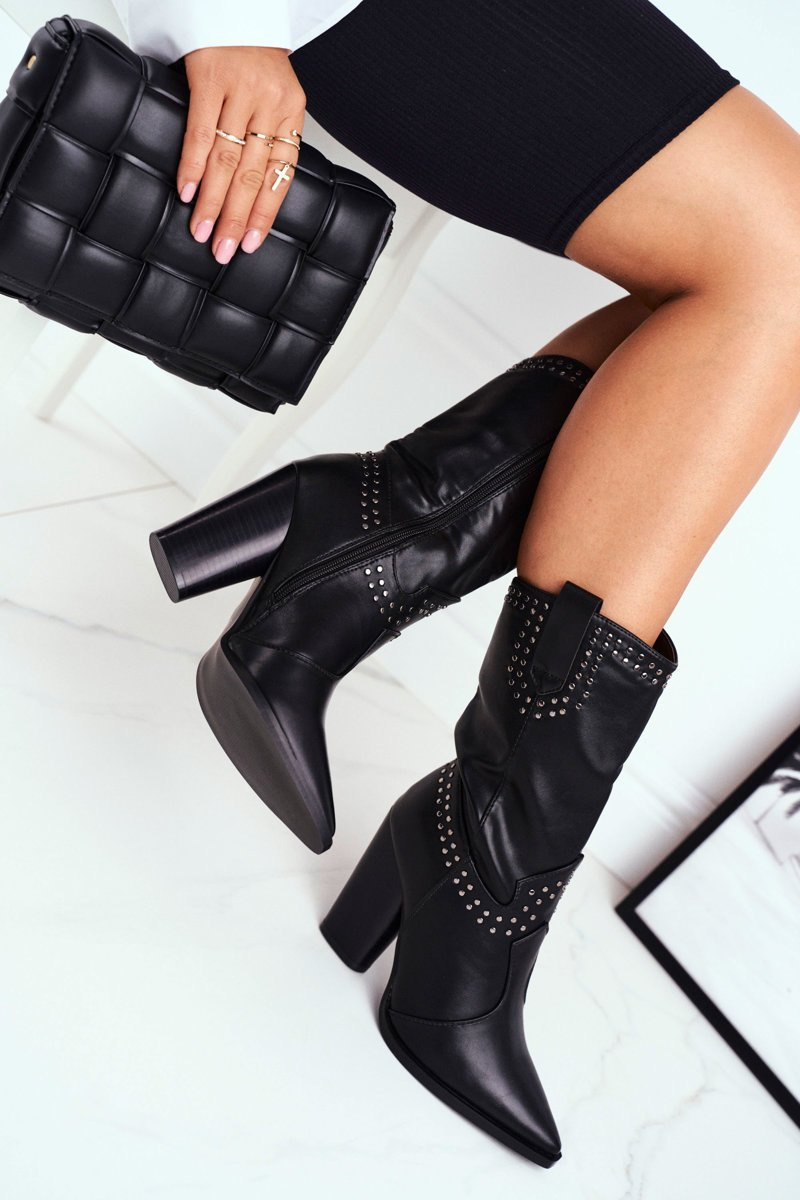 Botki Damskie Na Słupku Ciepłe Kowbojki Czarne Athens