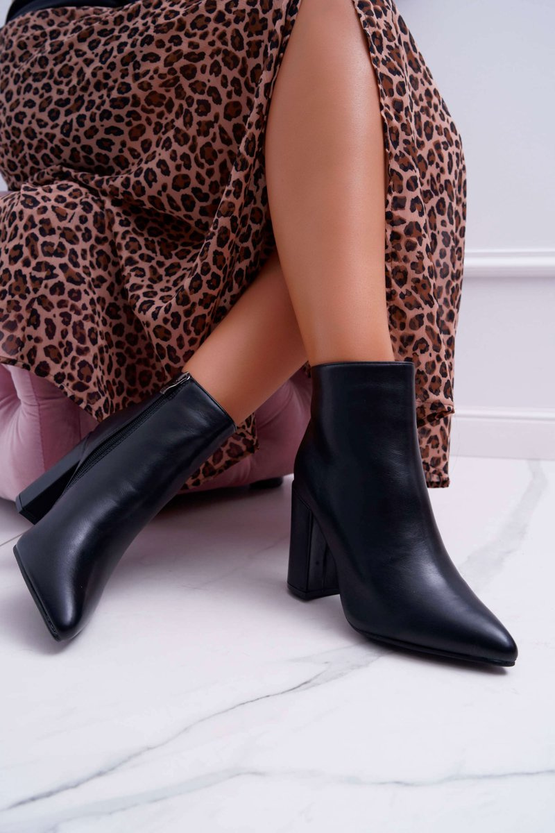Stylowe botki na słupku. Wnętrze ocieplone miłym w dotyku kocem obuwniczym. Zapinane na zamek z noskiem w szpic. Idealny model do jesiennych i zimowych stylizacji. Przy wyborze rozmiaru prosimy sugerować się tabelą rozmiarów, która dostępna jest po najechaniu bądź kliknięciu w dany rozmiar.