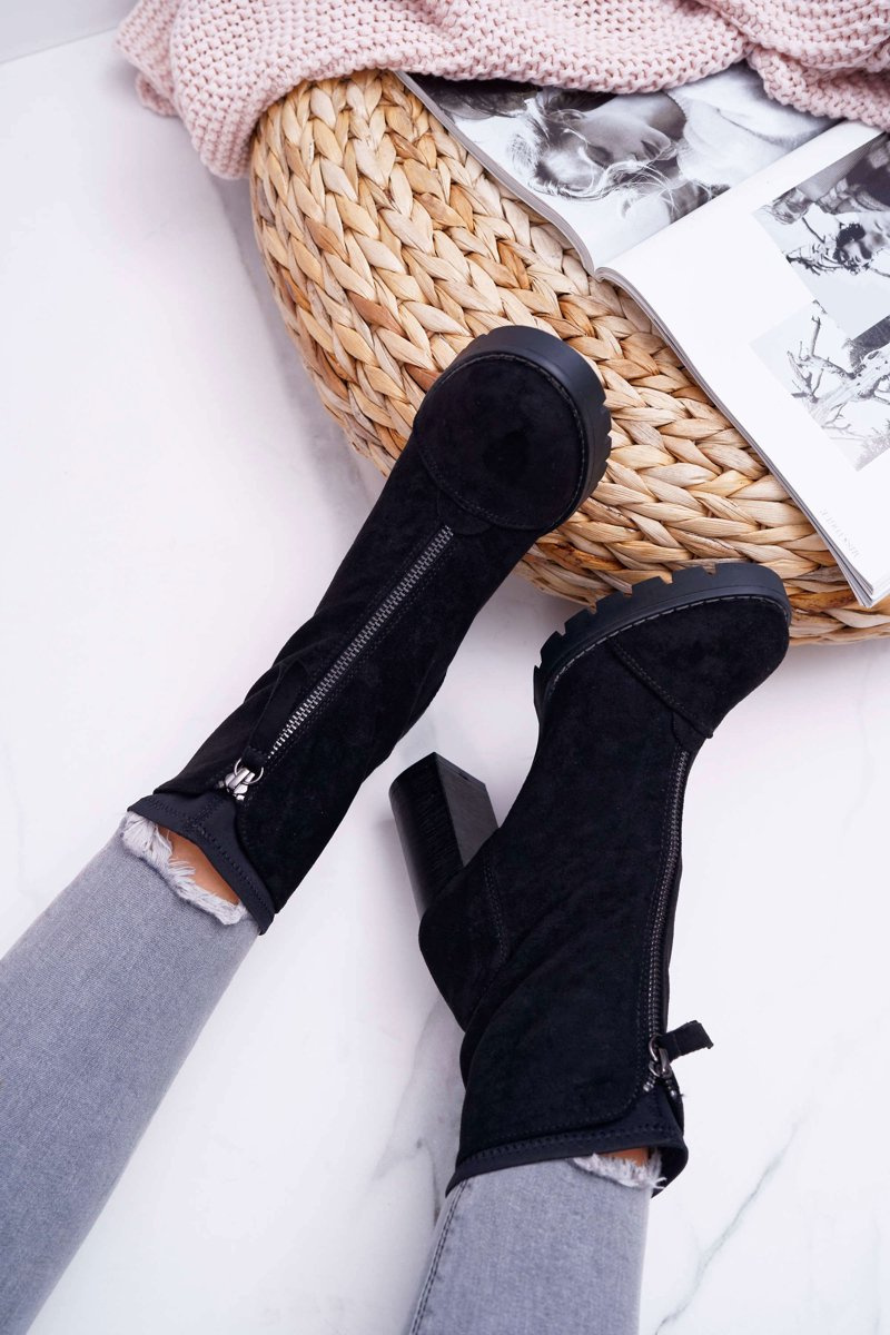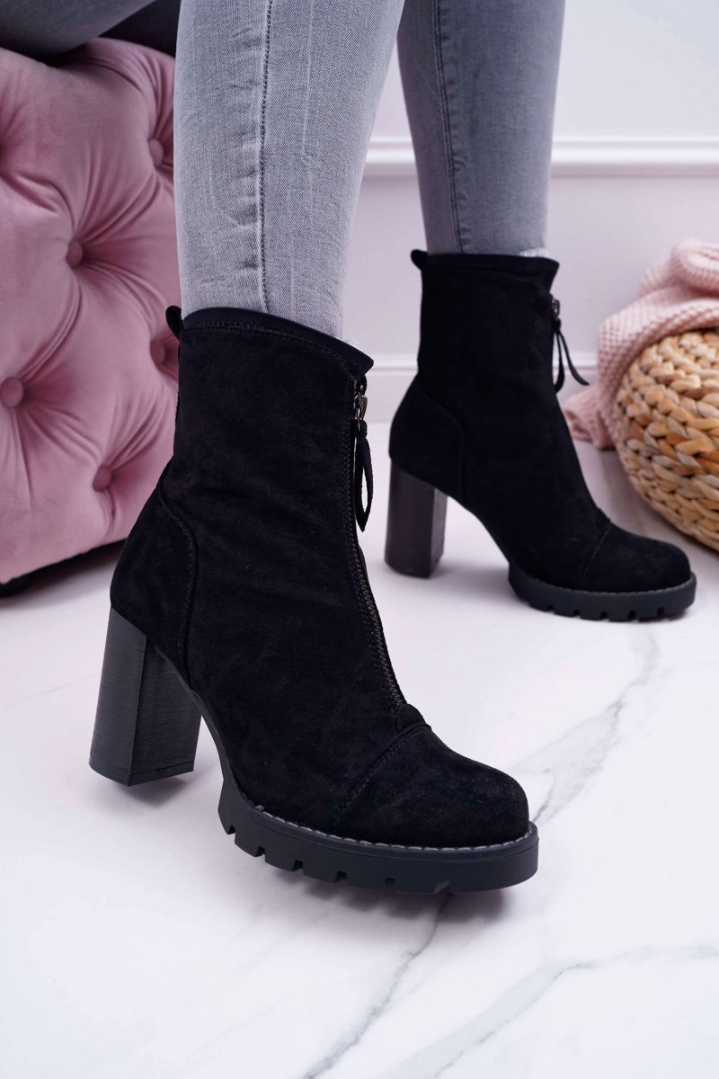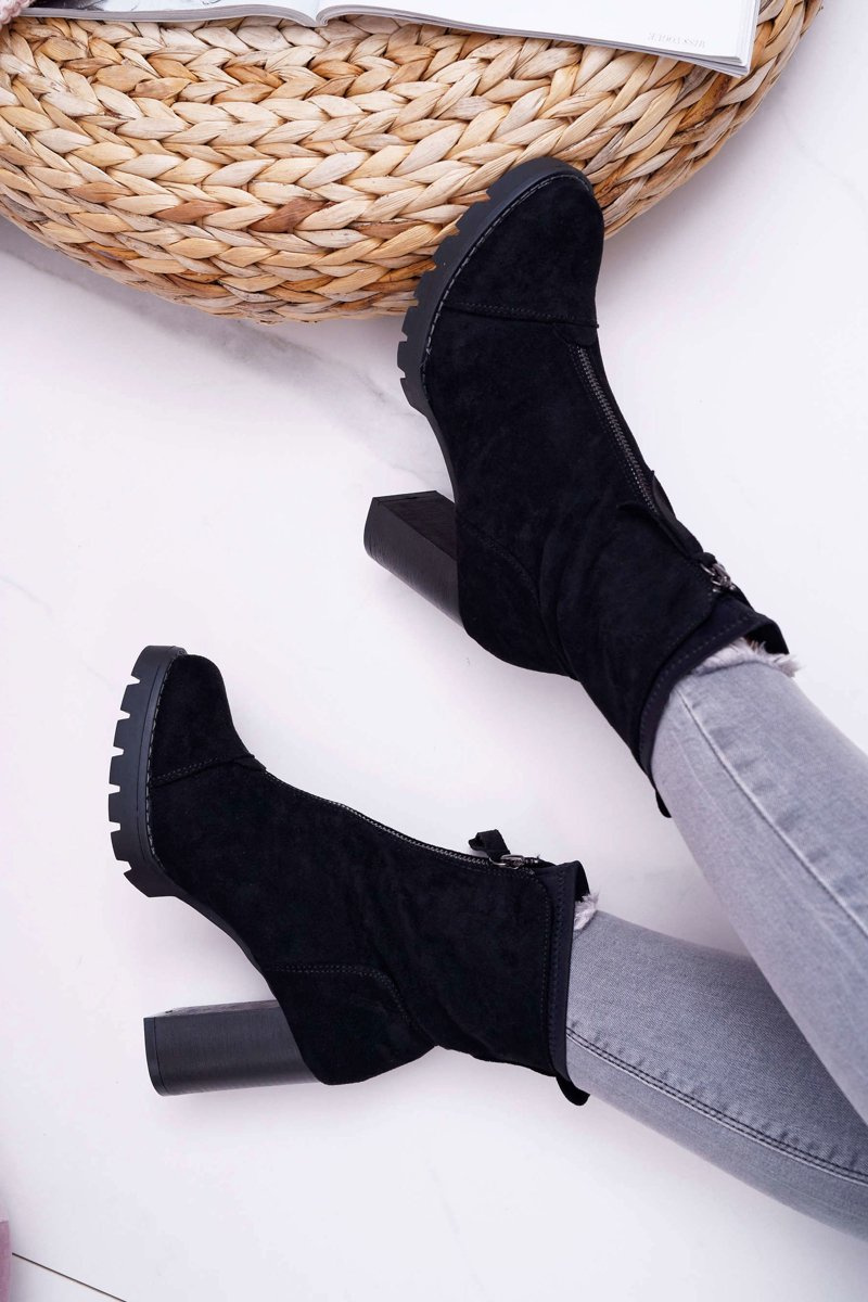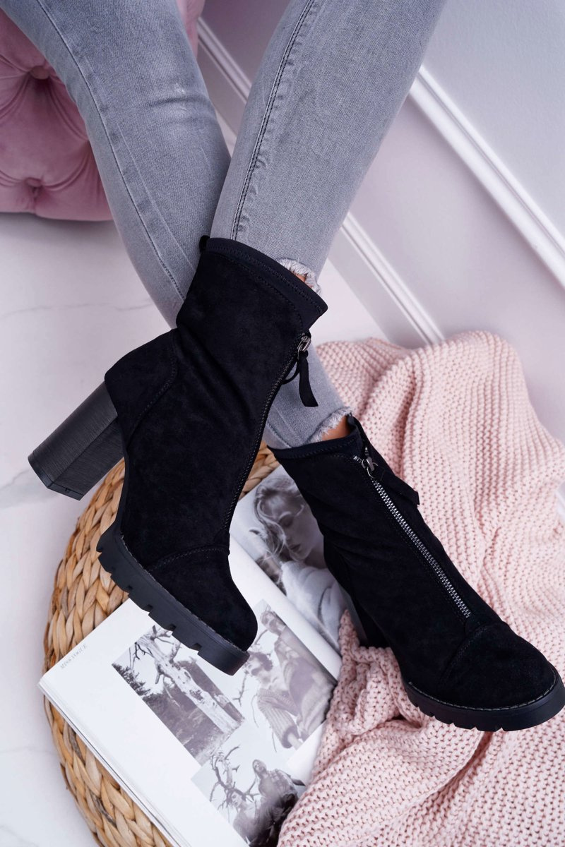 Botki na słupku wykonane z eko-zamszu z pewnością są i będą hitem stylizacji jeszcze przez długi czas! Nie może ich zabraknąć w Naszych stylizacjach. Zdobienie w postaci suwaka na przedniej części cholewki sprawia że nie można oderwać od nich oczu a dodatkowo ułatwi nam zakładanie. Przy wyborze rozmiaru prosimy sugerować się tabelą rozmiarów
