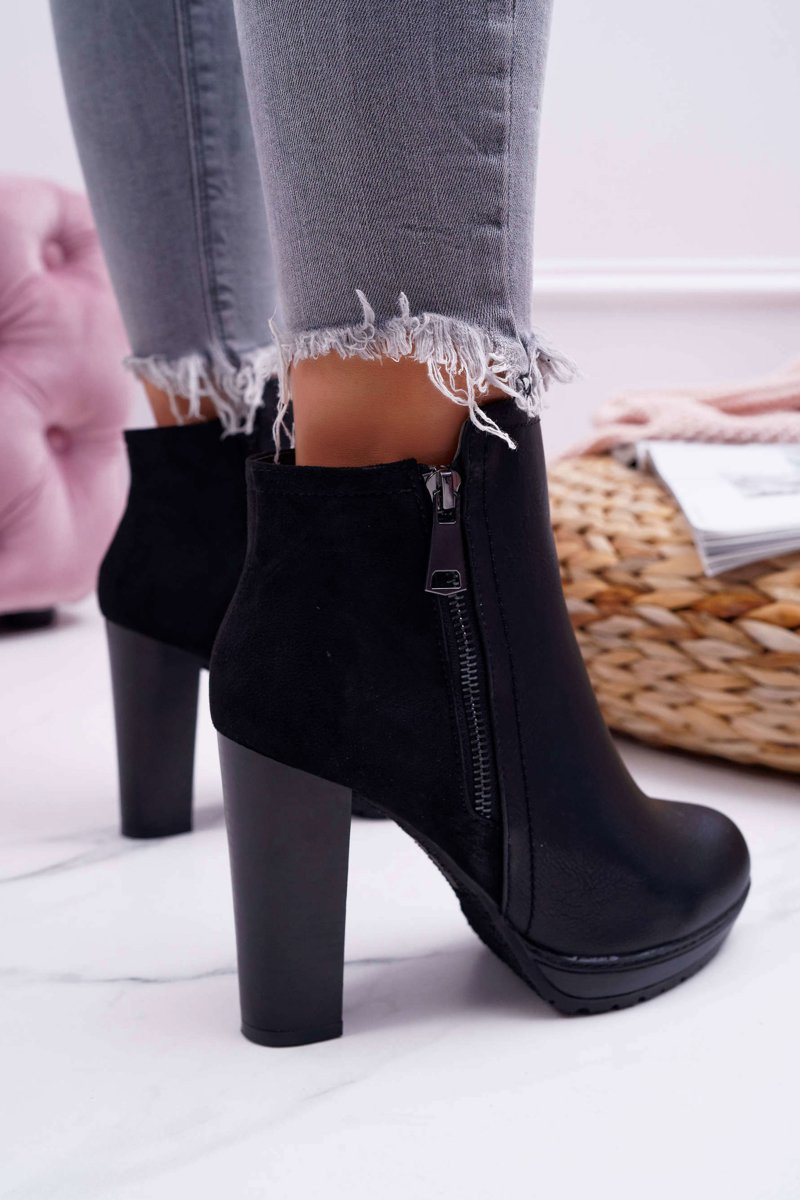 Botki na słupku wykonane z ekologicznej skóry oraz eko-zamszu, to połączenie z pewnością sprawi że stworzymy z nimi wiele wspaniałych stylizacji! Wnętrze pokryte kocem obuwniczym z krótkim włosiem, co zapewni nam komfort w każdych warunkach. Zdobienie w postaci suwaka na zewnętrznej części cholewki sprawia że nie można oderwać od nich oczu. Drugi suwak po wewnętrznej stronie ułatwi nam zakładanie. Przy wyborze rozmiaru prosimy sugerować się tabelą rozmiarów