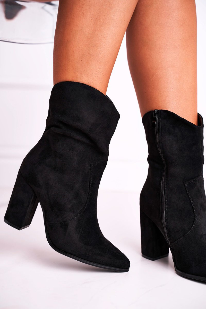 Botki Damskie Na Słupku Eko-Zamsz Czarne Ecstasy