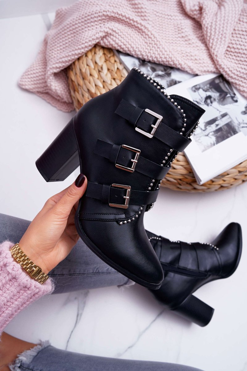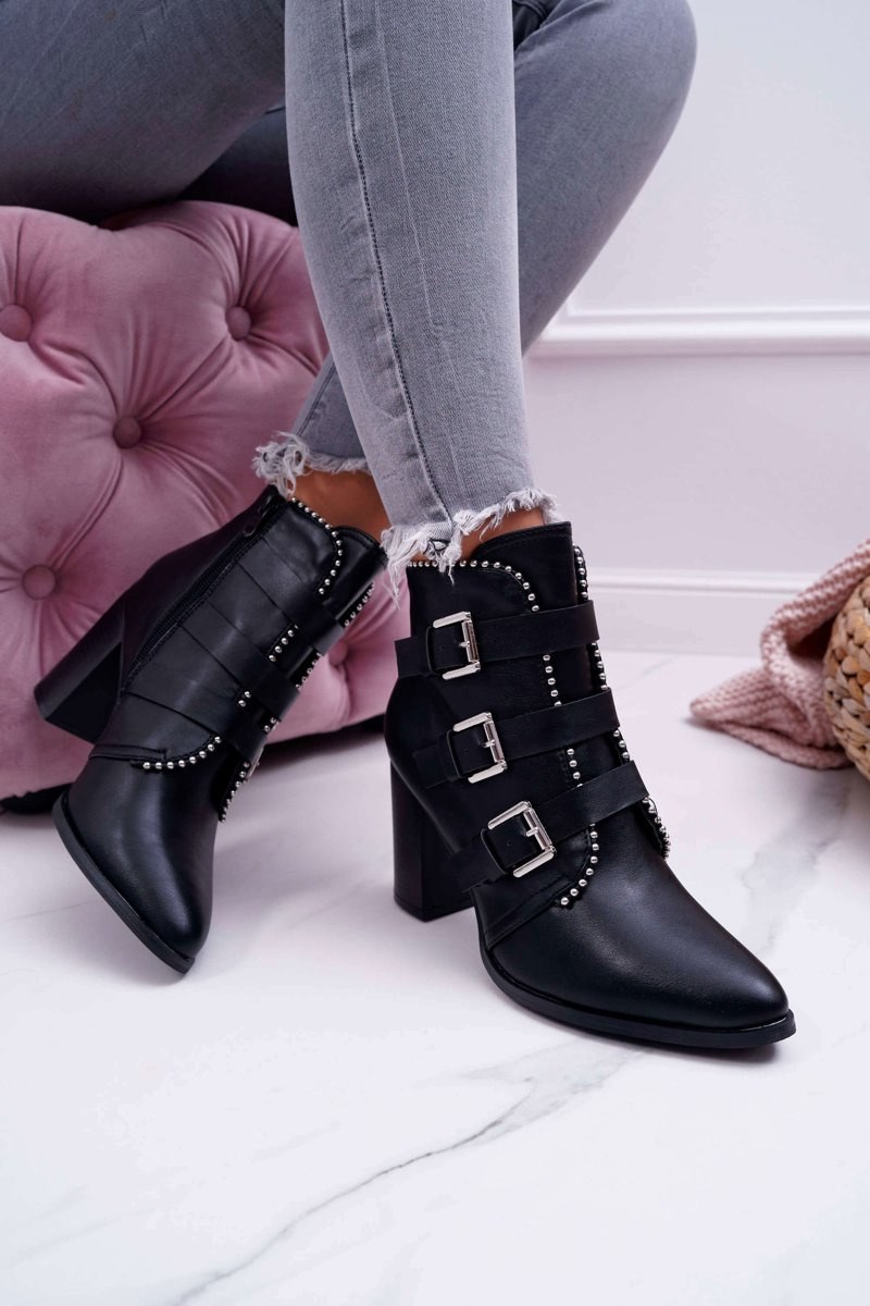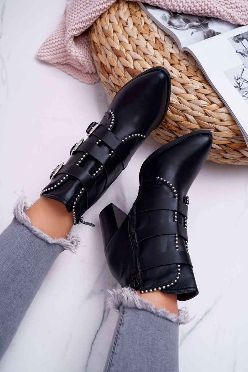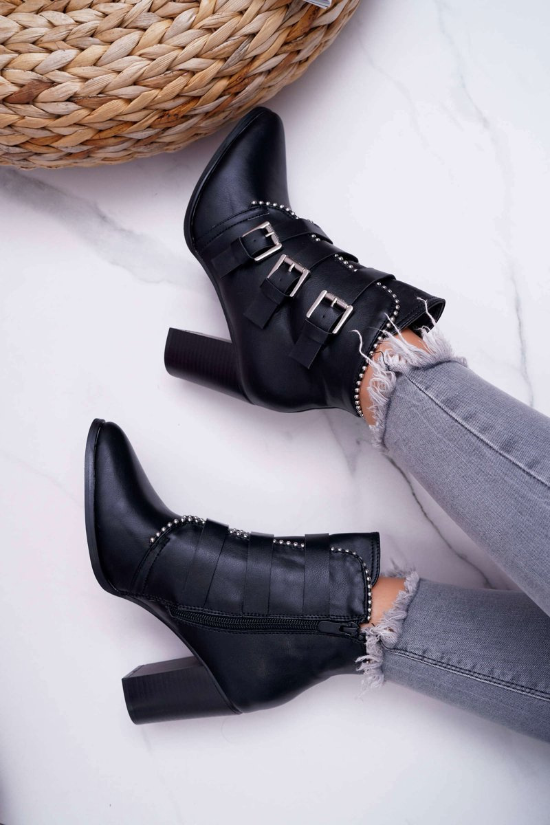 Botki Damskie Na Słupku Klamry Czarne Finbas