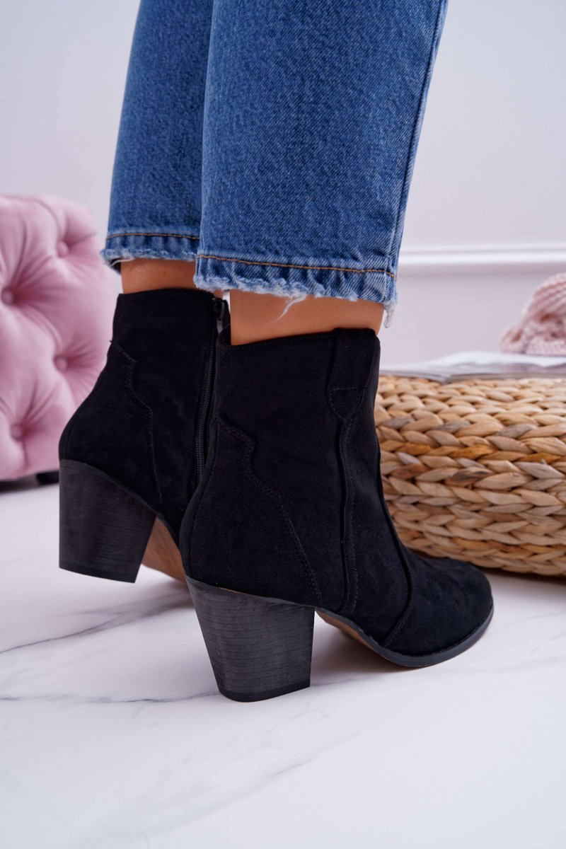 Botki Damskie Na Słupku Kowbojki Czarne Nutriso