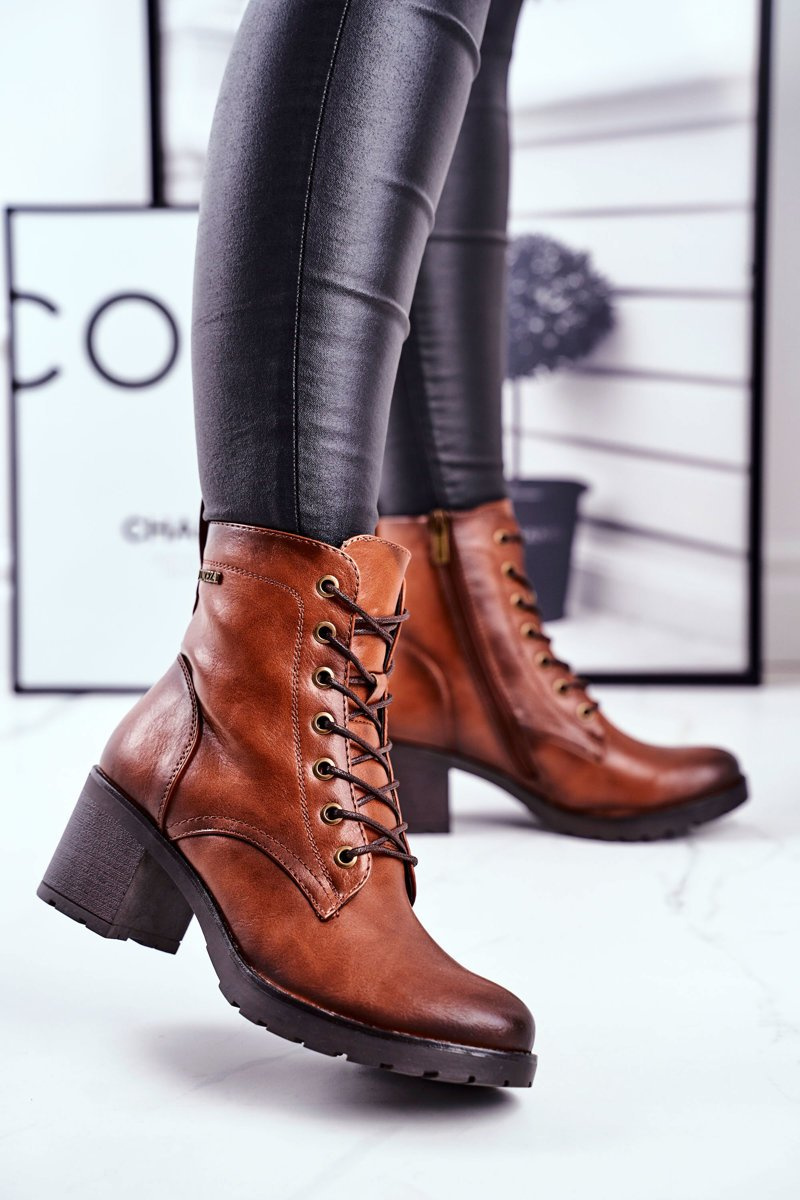 Botki Damskie Na Słupku Ocieplane Brązowe Fiber