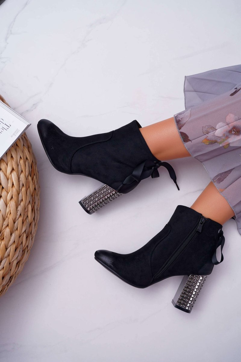 Botki Damskie Na Słupku Rock Suwak Czarne Stein
