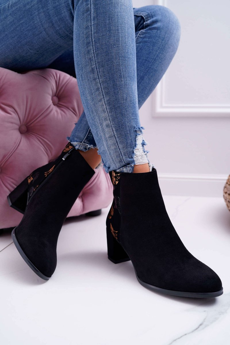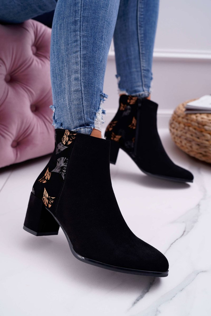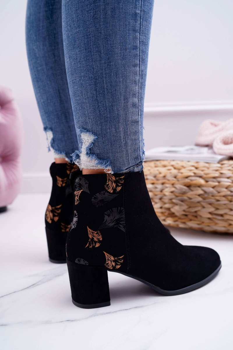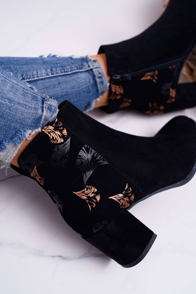 Botki Damskie Na Słupku Sergio Leone Czarne Beż BT521