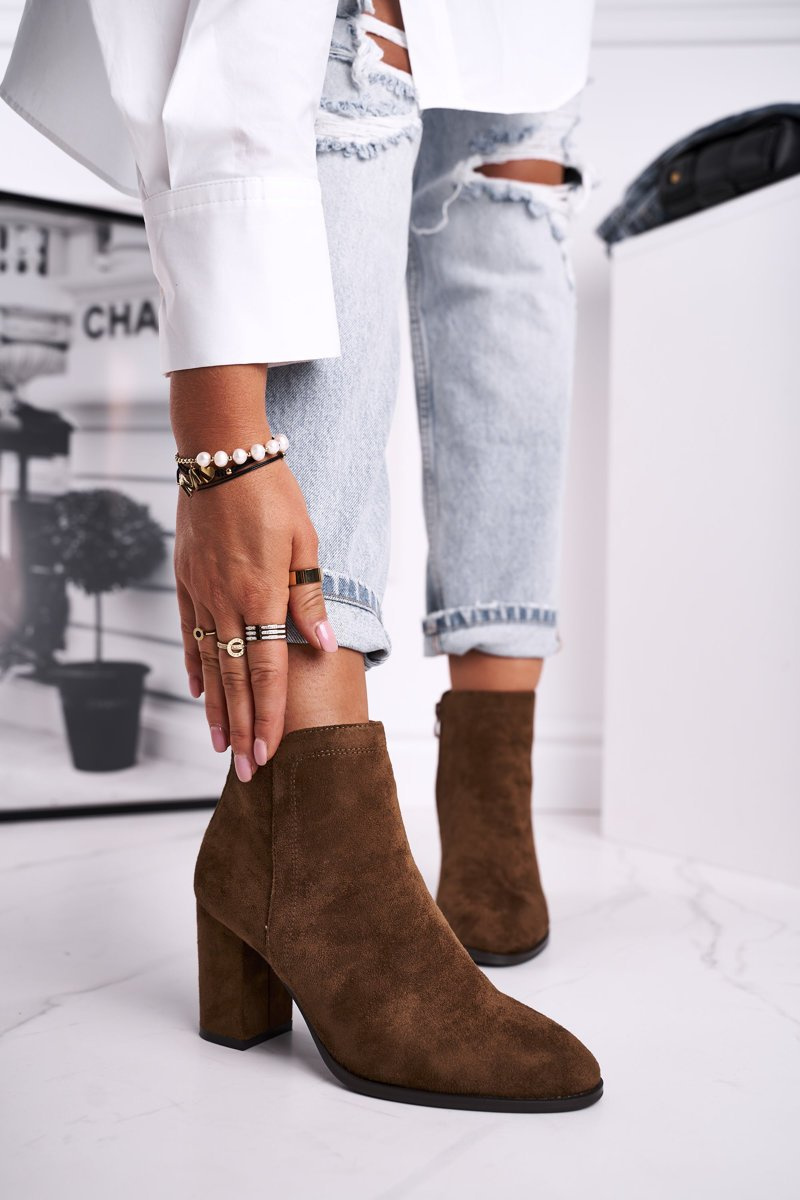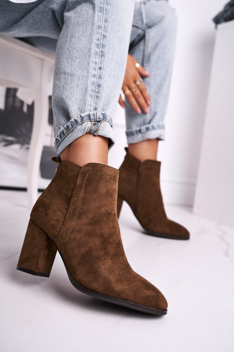Botki Damskie Na Słupku Sergio Leone Oliwkowe BT508