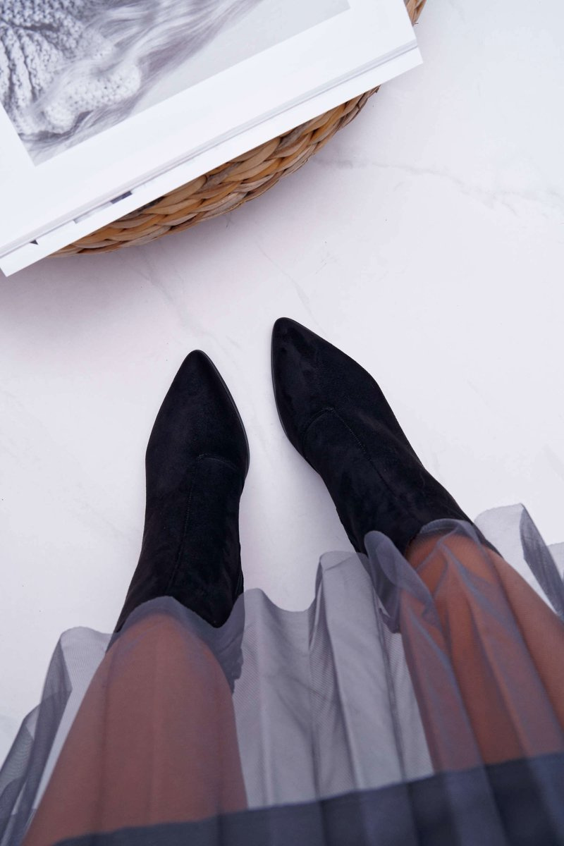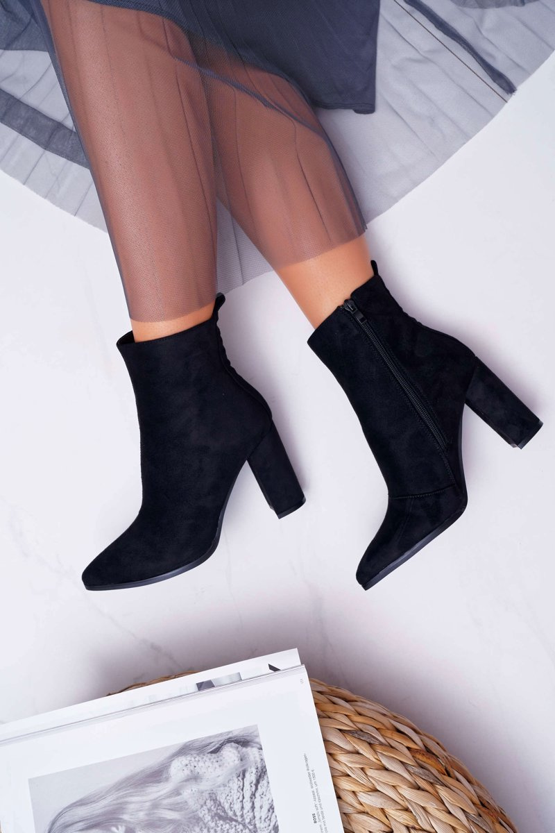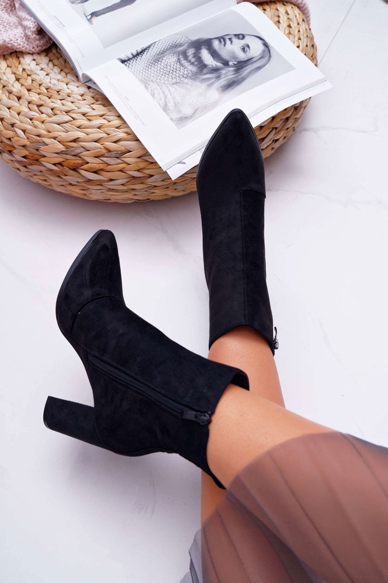 Botki Damskie Na Słupku Suwak W Szpic Zamszowe Czarne Ferol