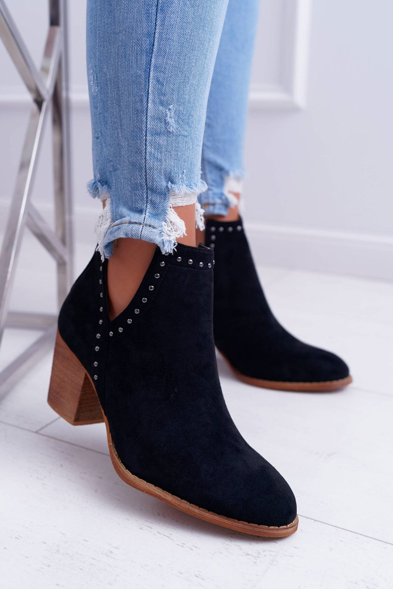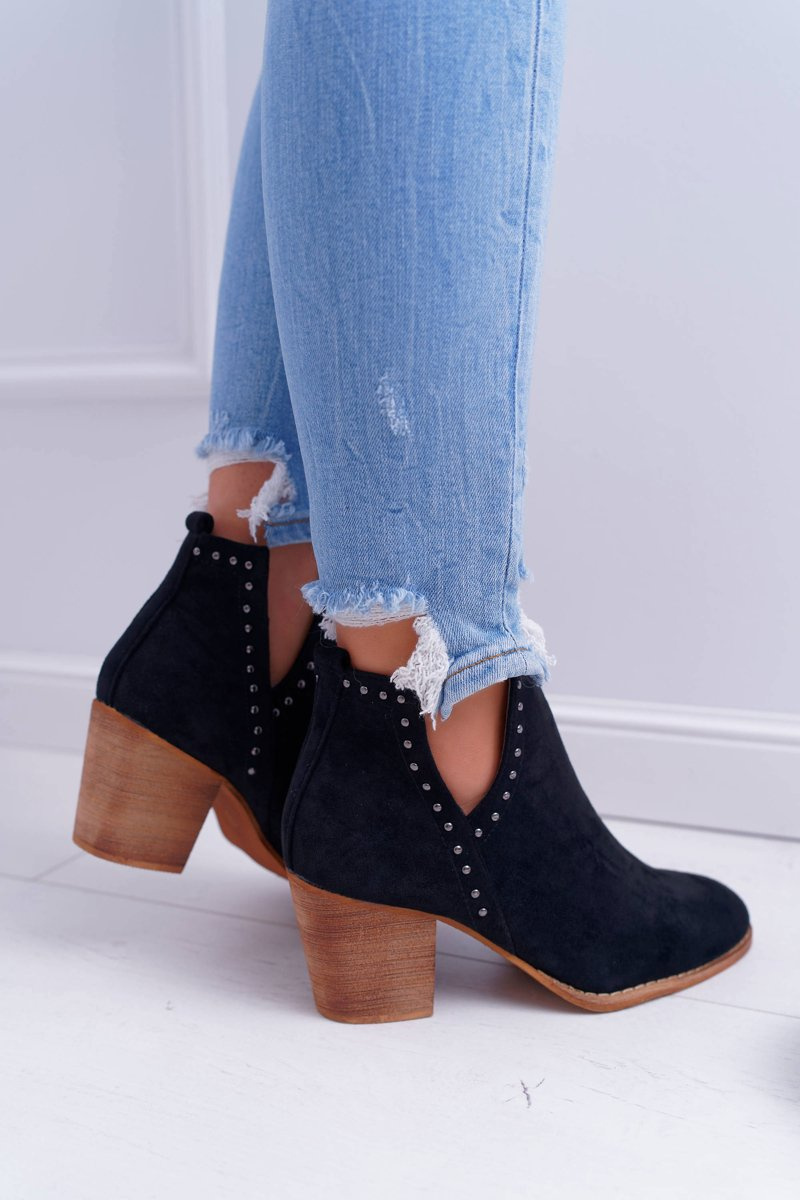 Botki Damskie Na Słupku Wsuwane z Wycięciami Czarne ManiMani