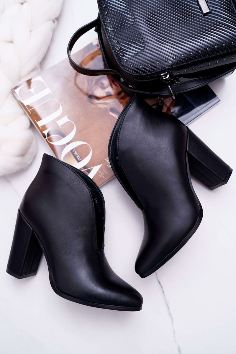 Botki Damskie Na Słupku Wsuwane z Wycięciami Czarne Mantana