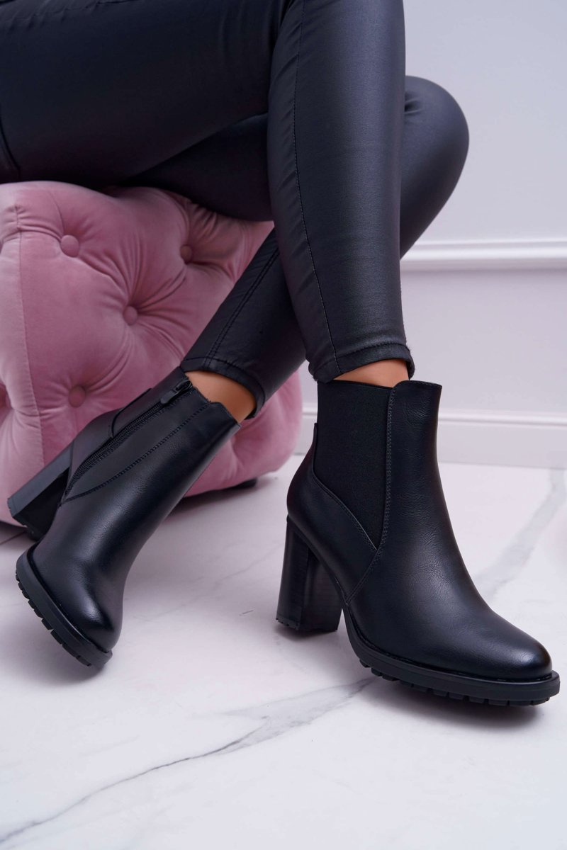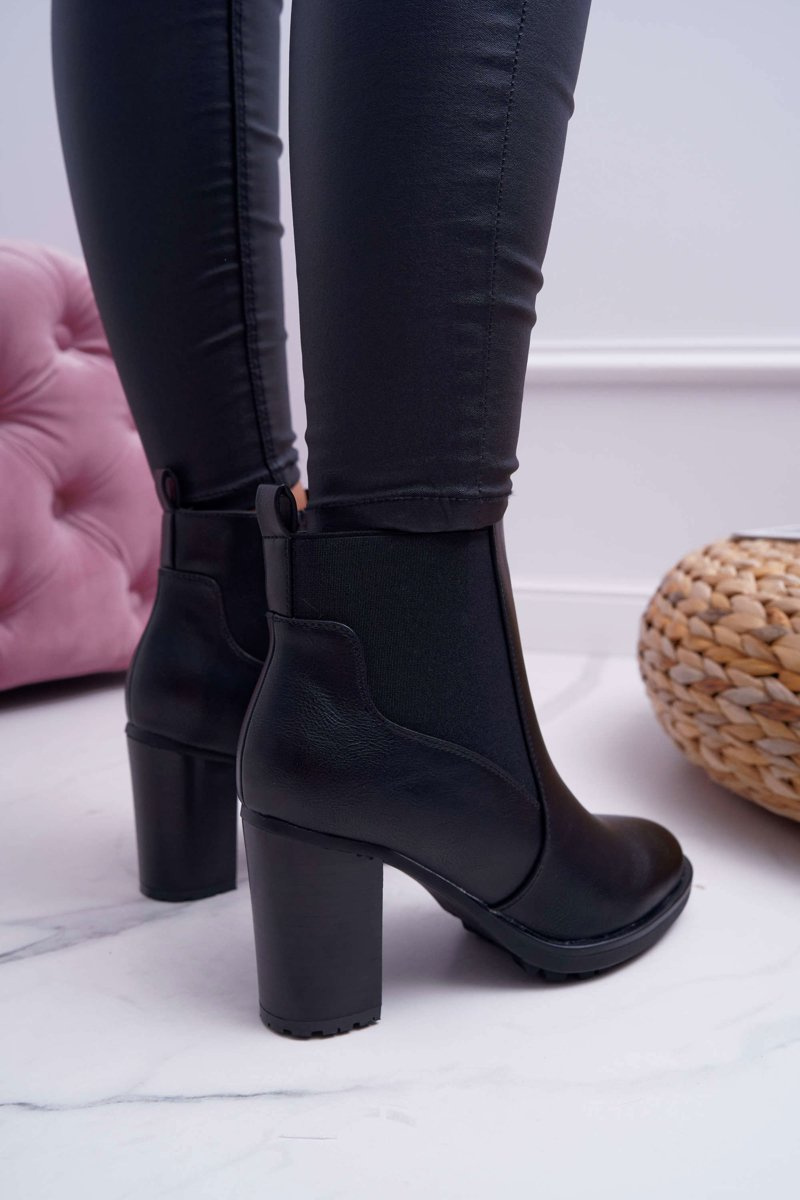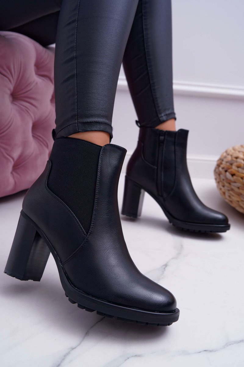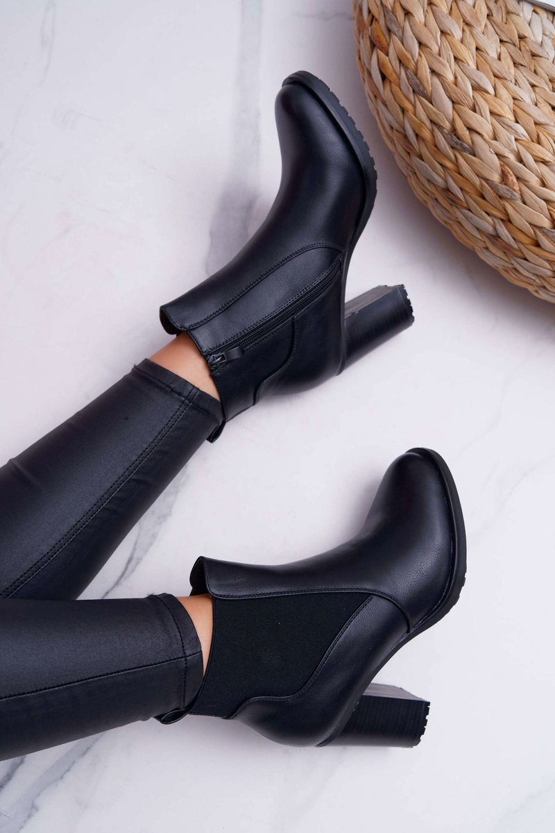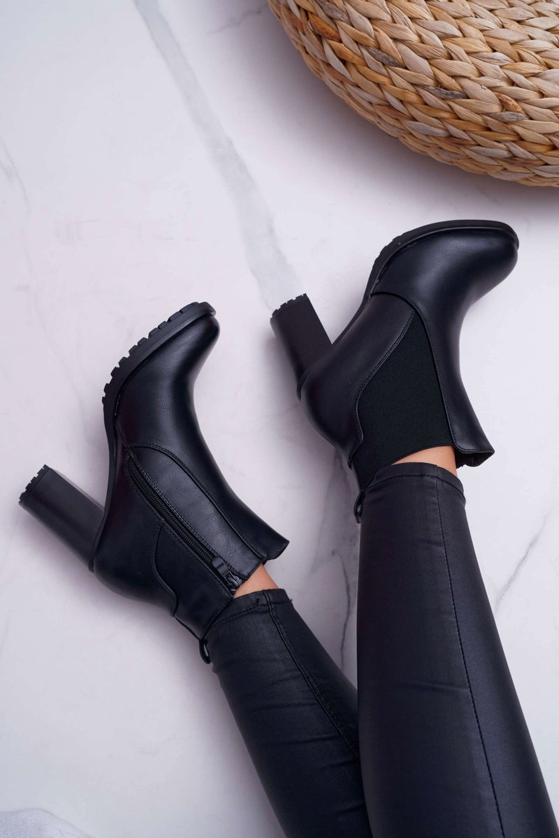 Botki Damskie Na Słupku z Zamkiem Czarne Beloved